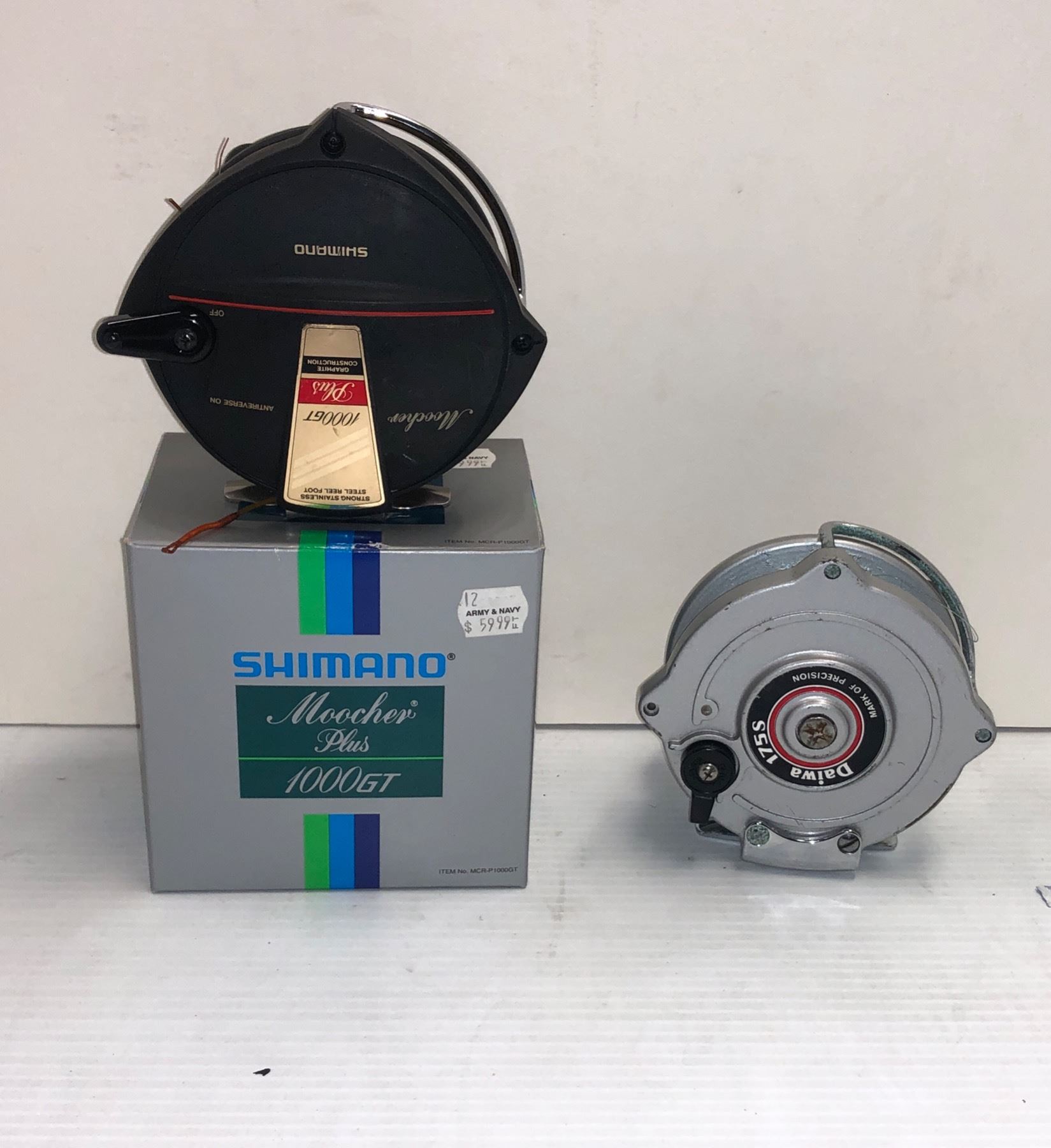 Group of 2 vintage fishing reels - includes 1 Shimano Moocher Plus 1000GT in his original box & 1 Daiwa 175S Seiko Japan
