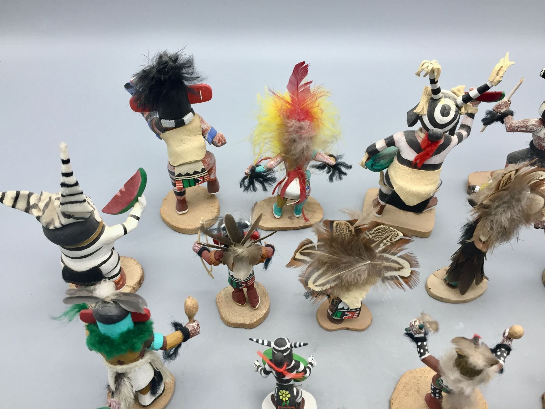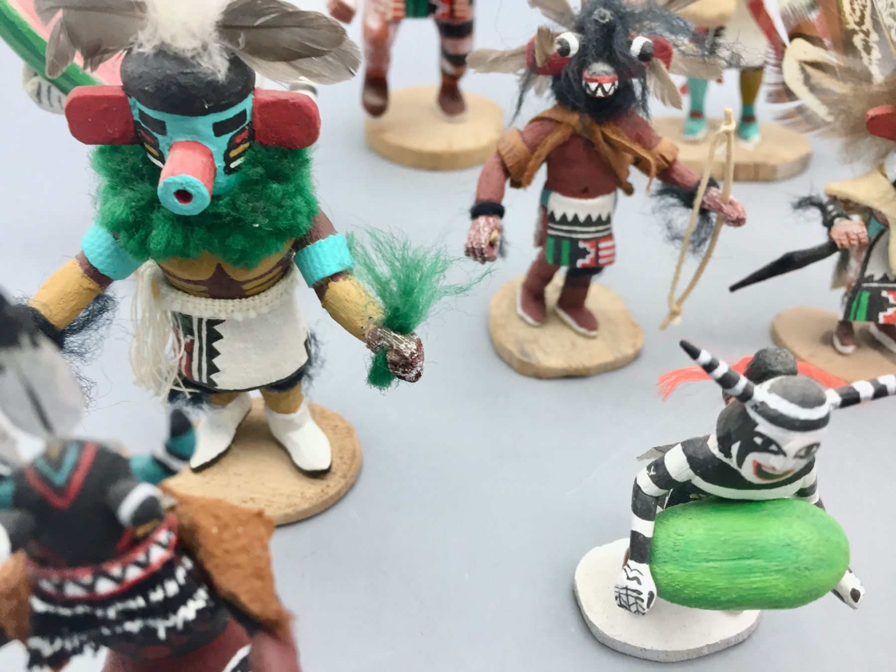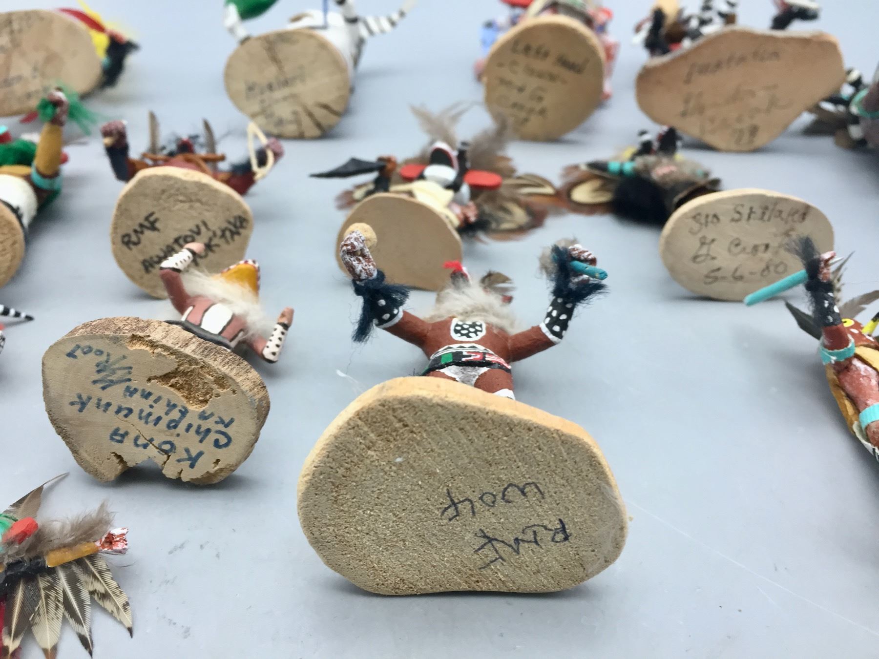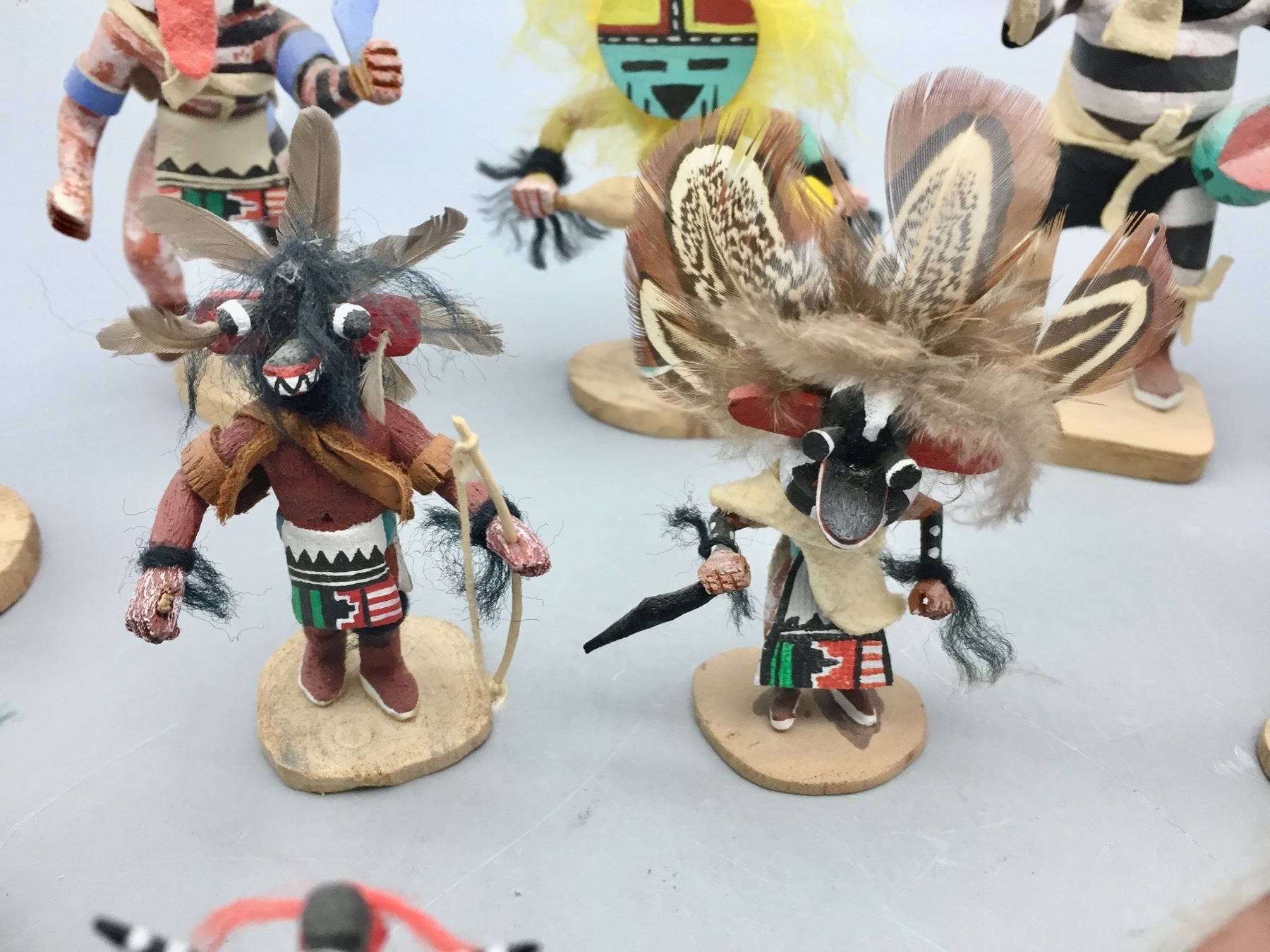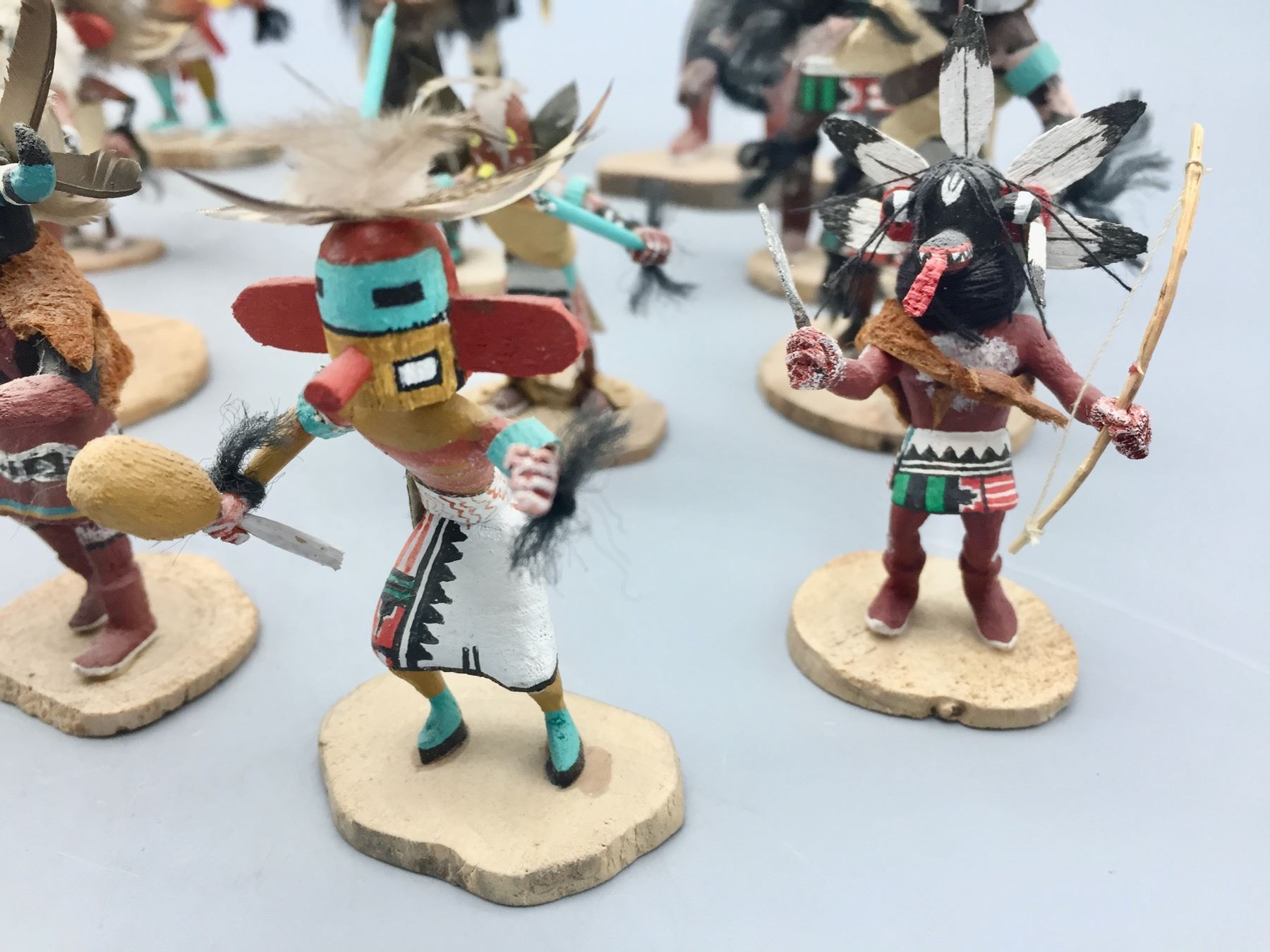 Description: Presented for sale in this lot we have a group of 20 handmade Kachinas in various styles and sizes. Take a look! Maker: Various. Approx. Age: Vintage to modern. Size: Various. Condition: Pretty good for their ages, some wear and imperfections expected. Please look closely at the pictures - they are an important part of our description. Shipping: There will be a $15 handling, packaging fee for shipping this lot. The actual cost of postage will be added on top of that.