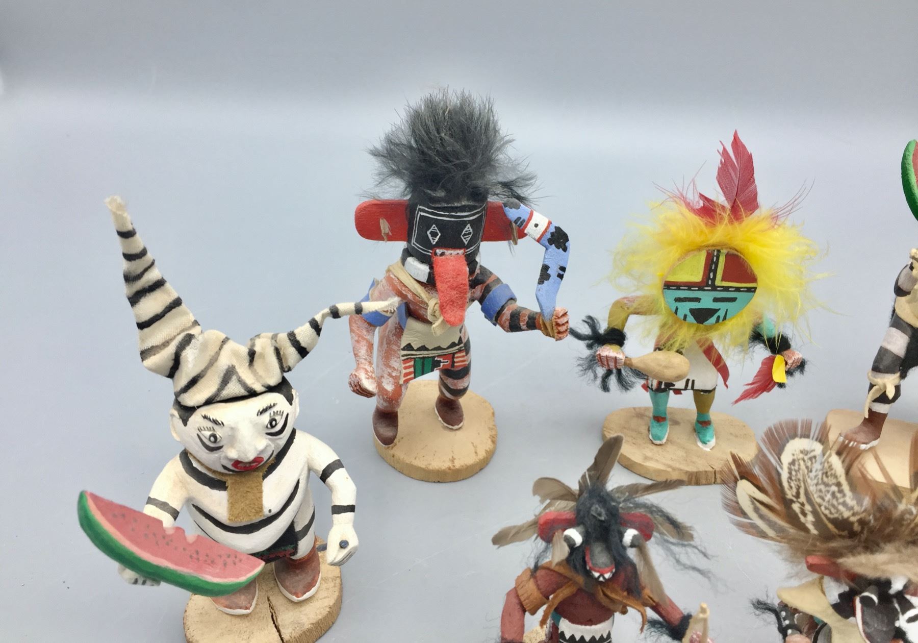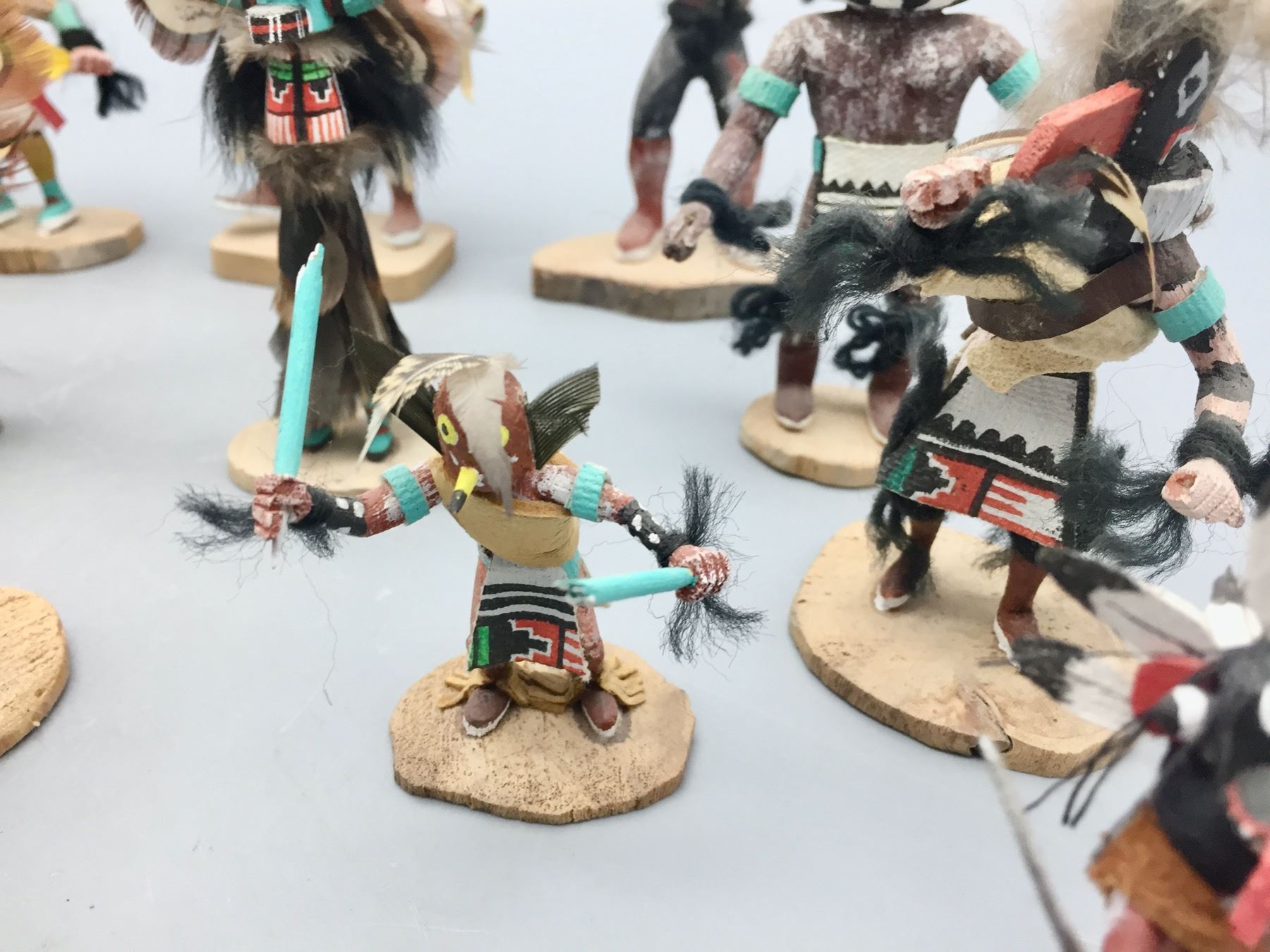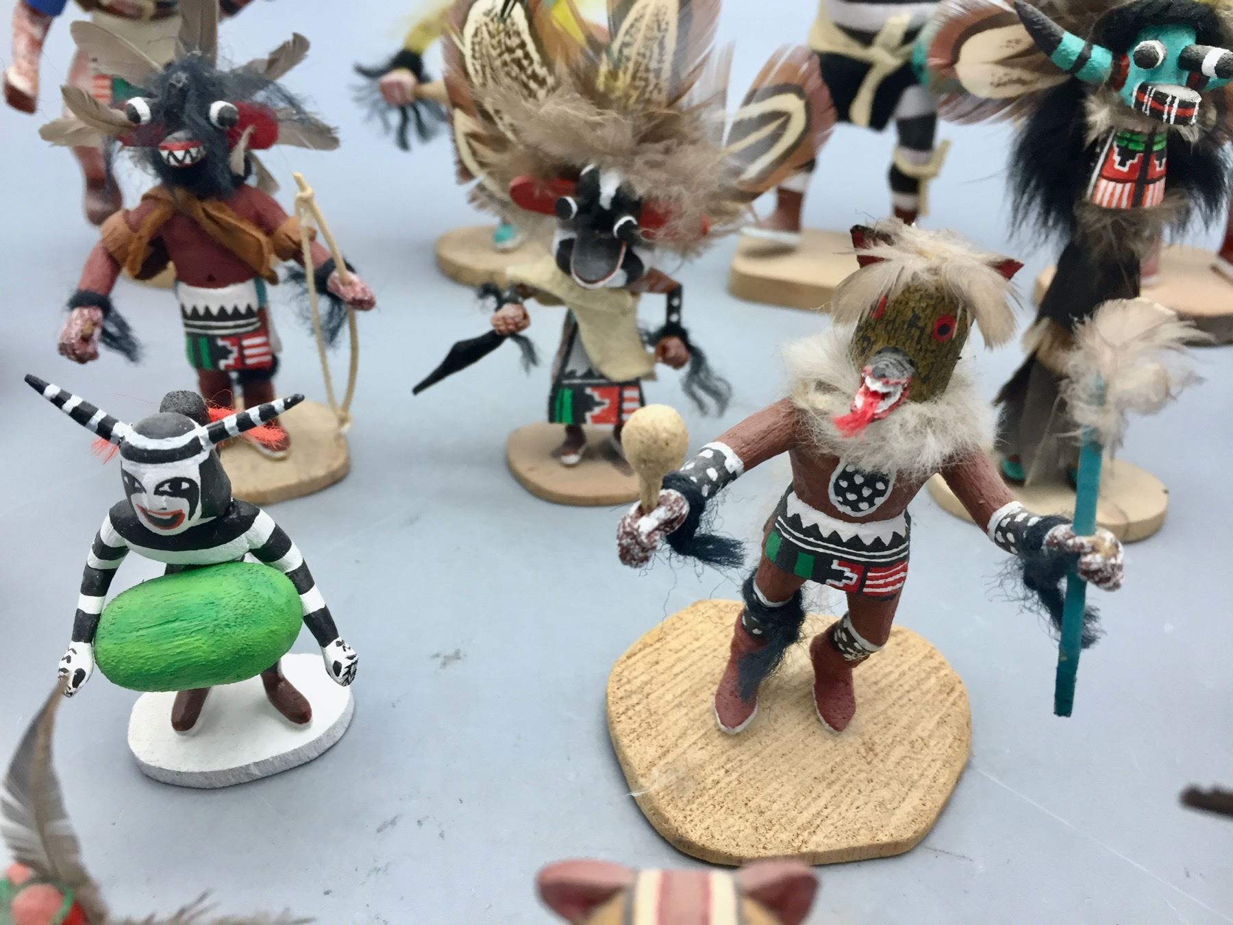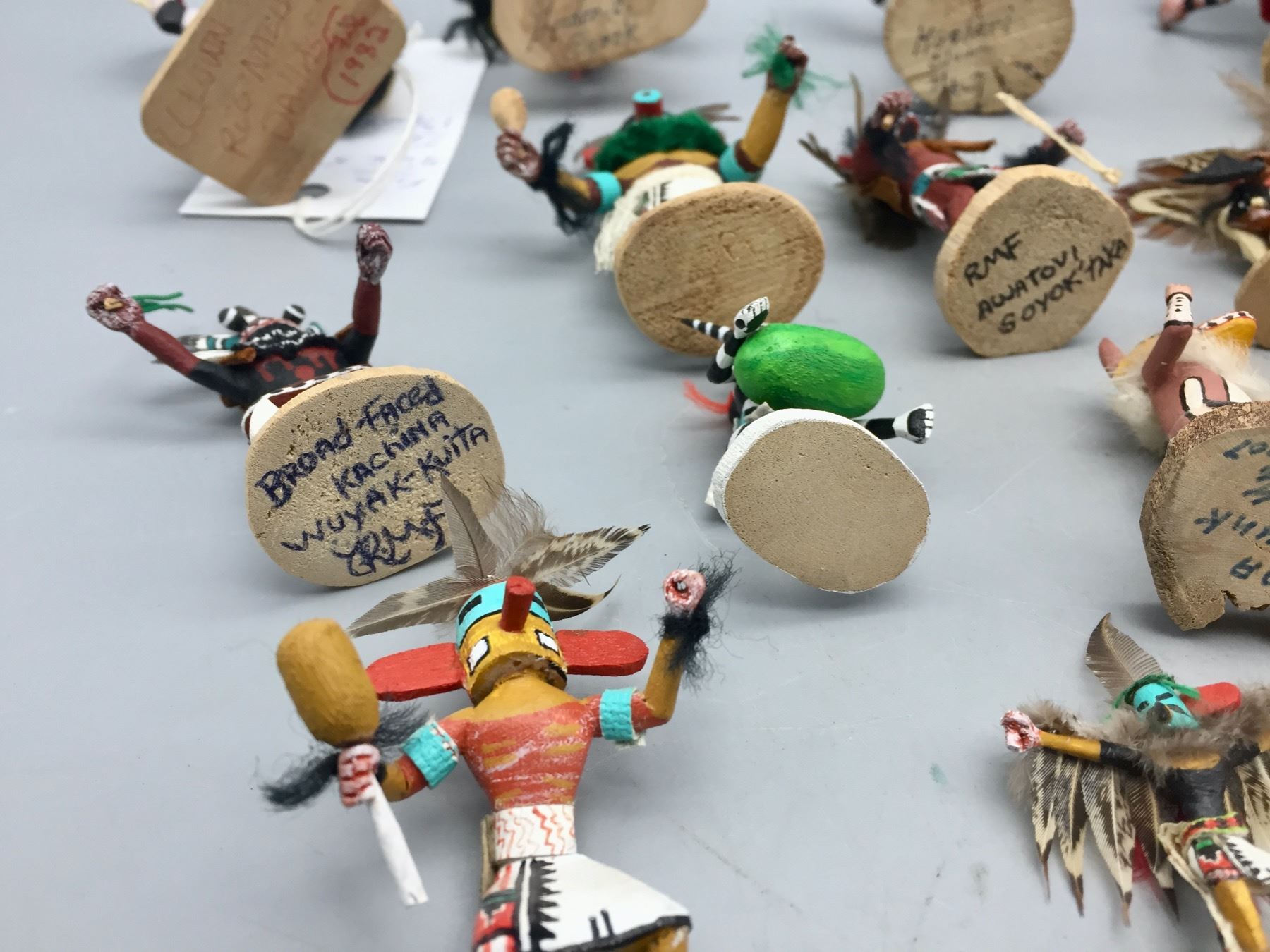Description: Presented for sale in this lot we have a group of 20 handmade Kachinas in various styles and sizes. Take a look! Maker: Various. Approx. Age: Vintage to modern. Size: Various. Condition: Pretty good for their ages, some wear and imperfections expected. Please look closely at the pictures - they are an important part of our description. Shipping: There will be a $15 handling, packaging fee for shipping this lot. The actual cost of postage will be added on top of that.