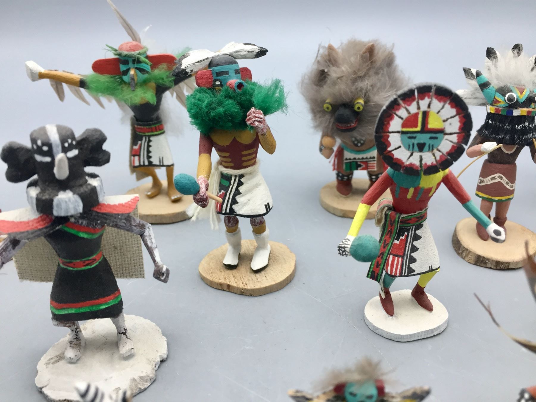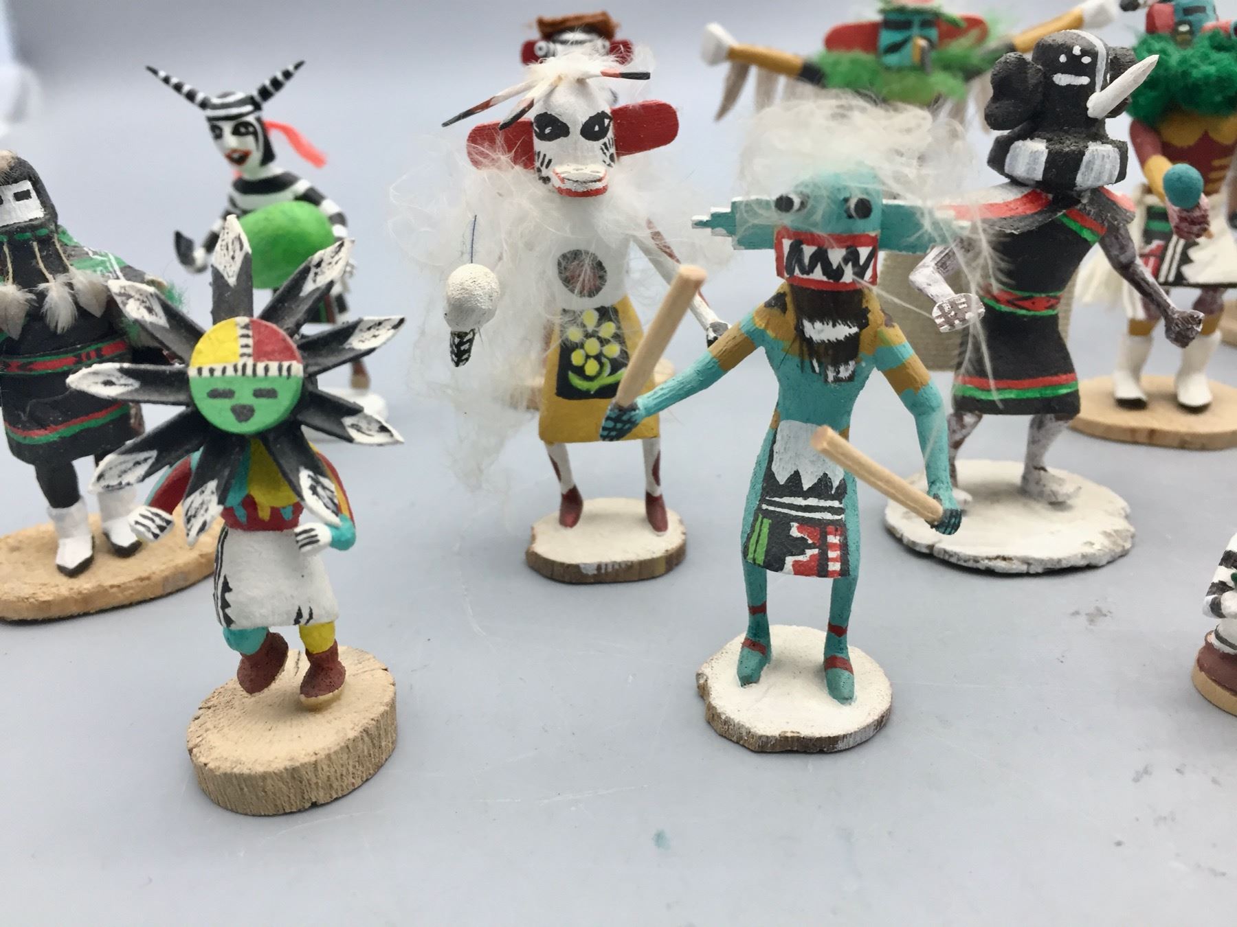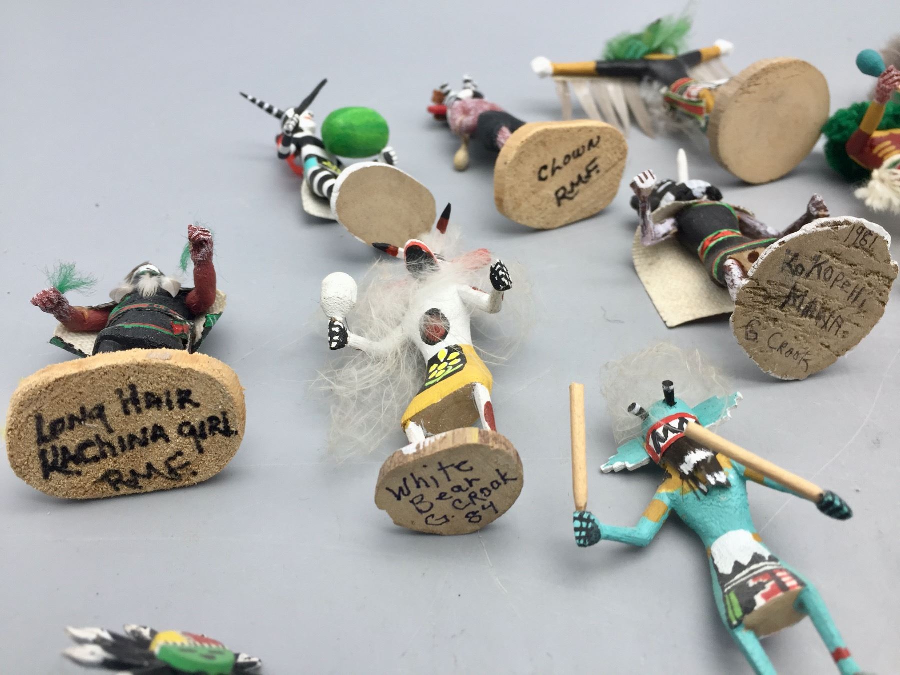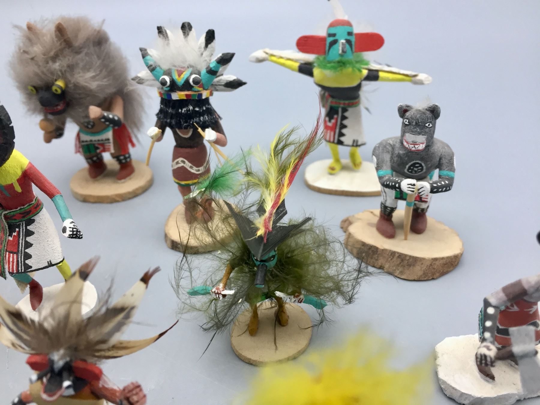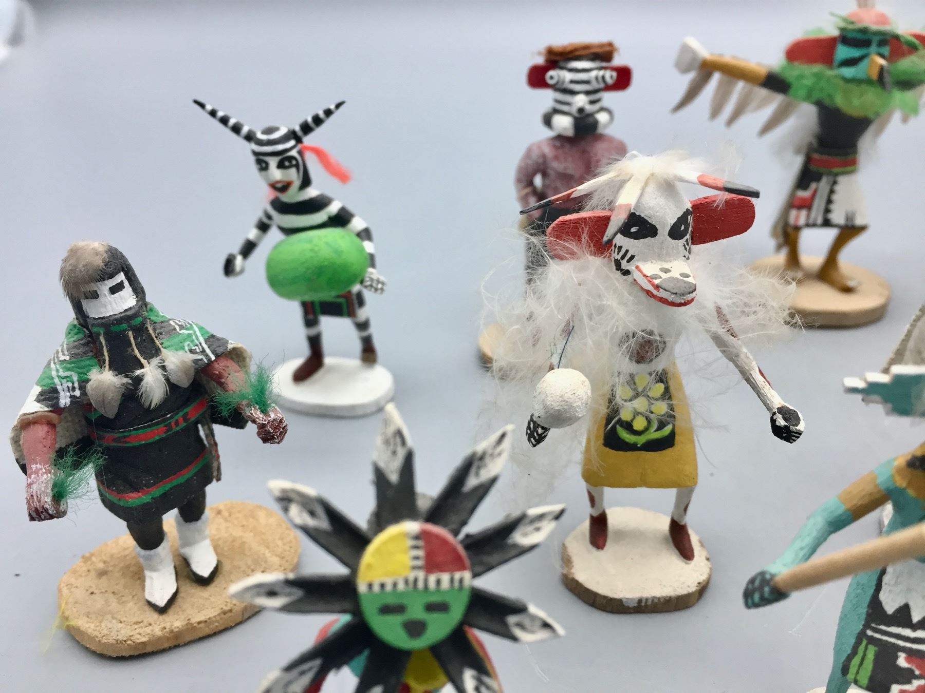 Description: Presented for sale in this lot we have a group of 20 handmade Kachinas in various styles and sizes. Take a look! Maker: Various. Approx. Age: Vintage to modern. Size: Various. Condition: Pretty good for their ages, some wear and imperfections expected. Please look closely at the pictures - they are an important part of our description. Shipping: There will be a $15 handling, packaging fee for shipping this lot. The actual cost of postage will be added on top of that.