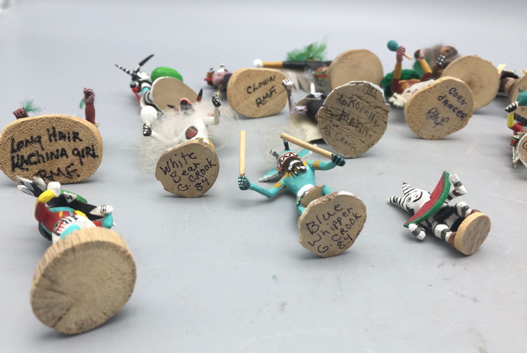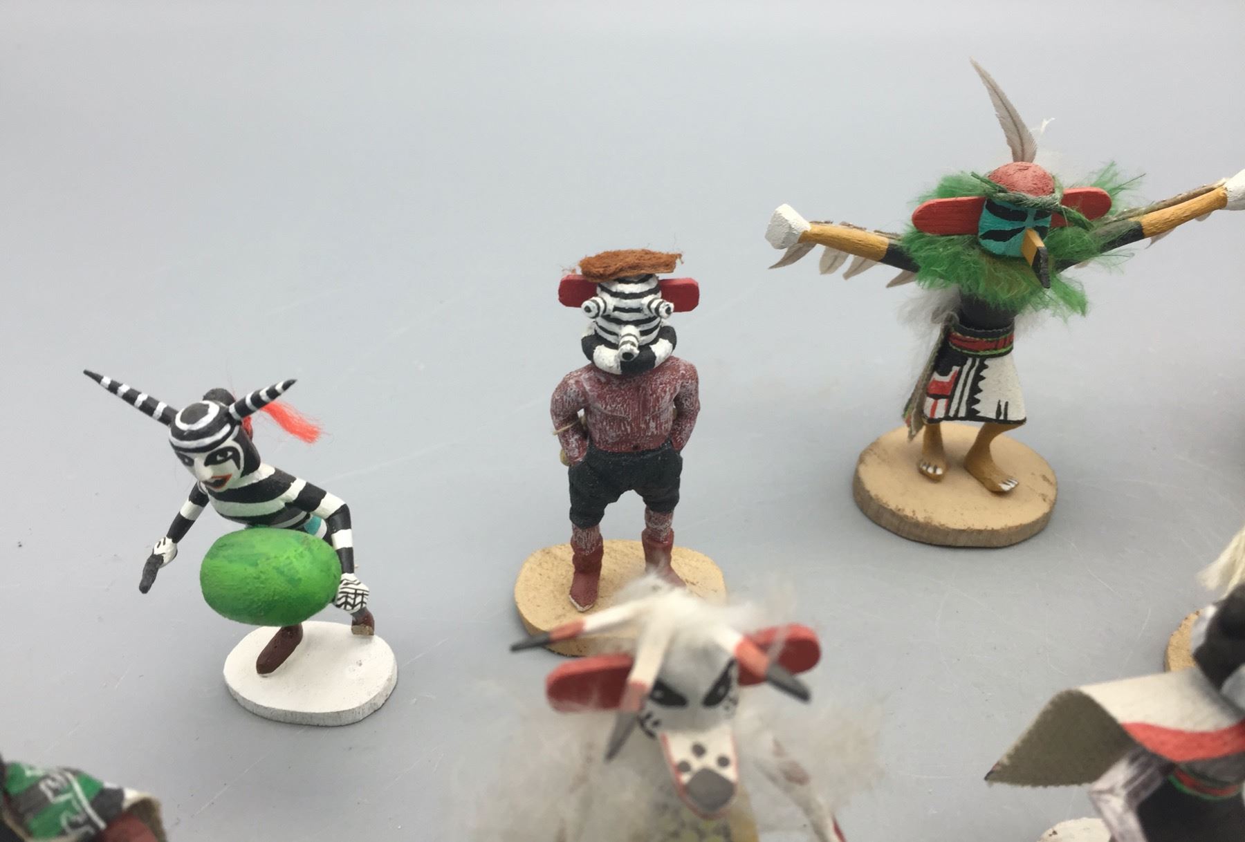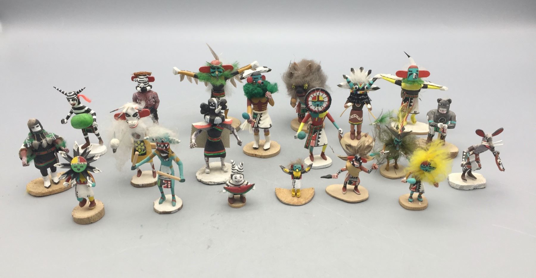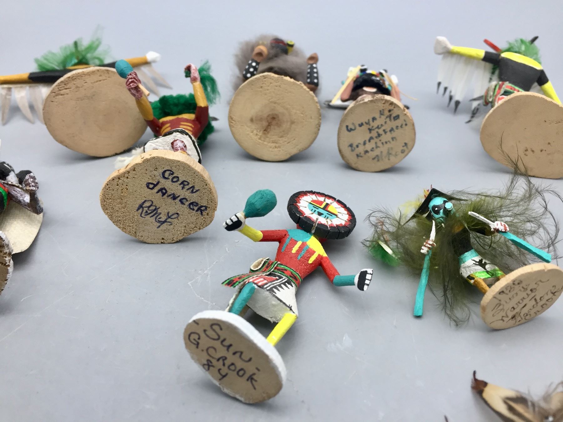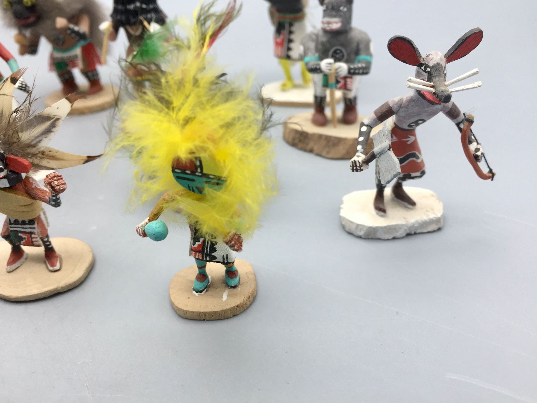Description: Presented for sale in this lot we have a group of 20 handmade Kachinas in various styles and sizes. Take a look! Maker: Various. Approx. Age: Vintage to modern. Size: Various. Condition: Pretty good for their ages, some wear and imperfections expected. Please look closely at the pictures - they are an important part of our description. Shipping: There will be a $15 handling, packaging fee for shipping this lot. The actual cost of postage will be added on top of that.