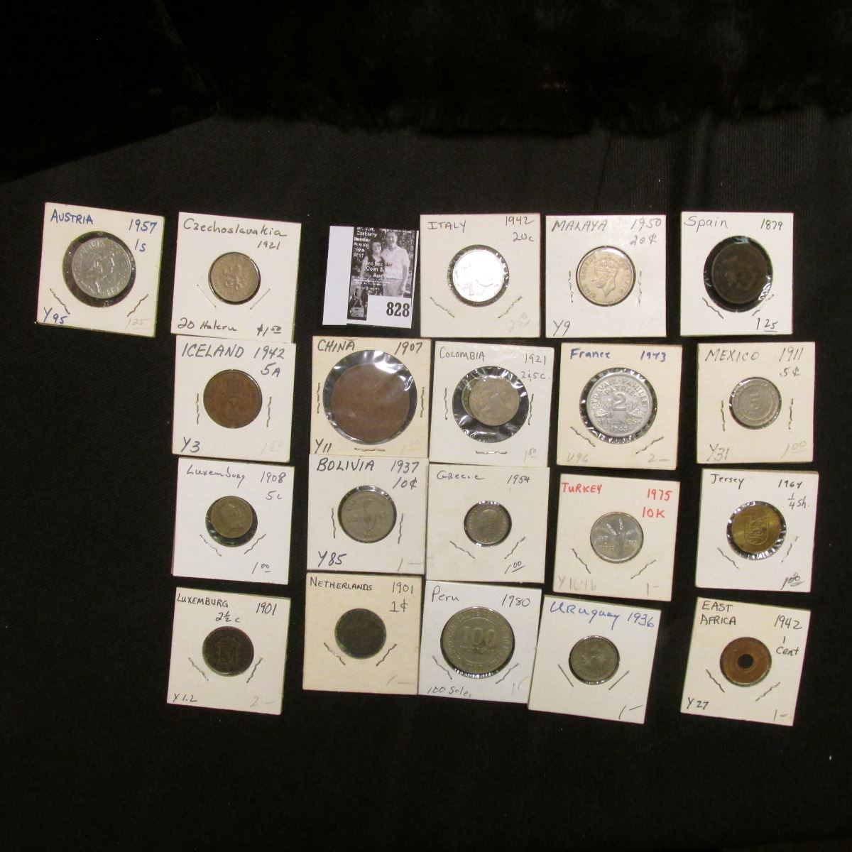 Group of (20) various foreign coins in cardboard holders, all attributed.