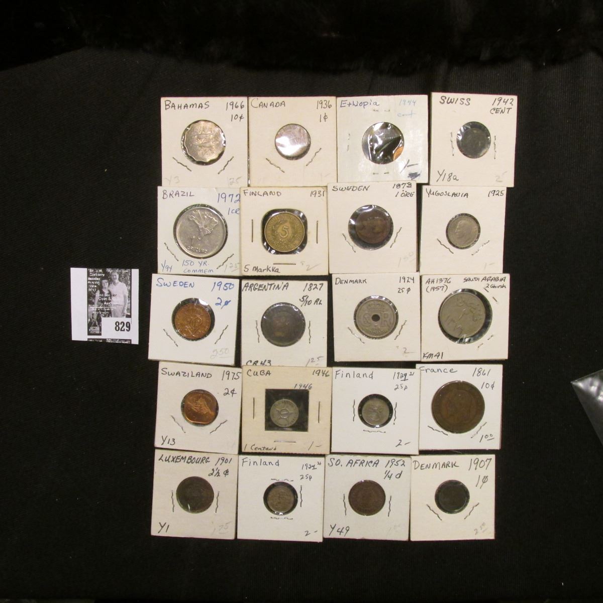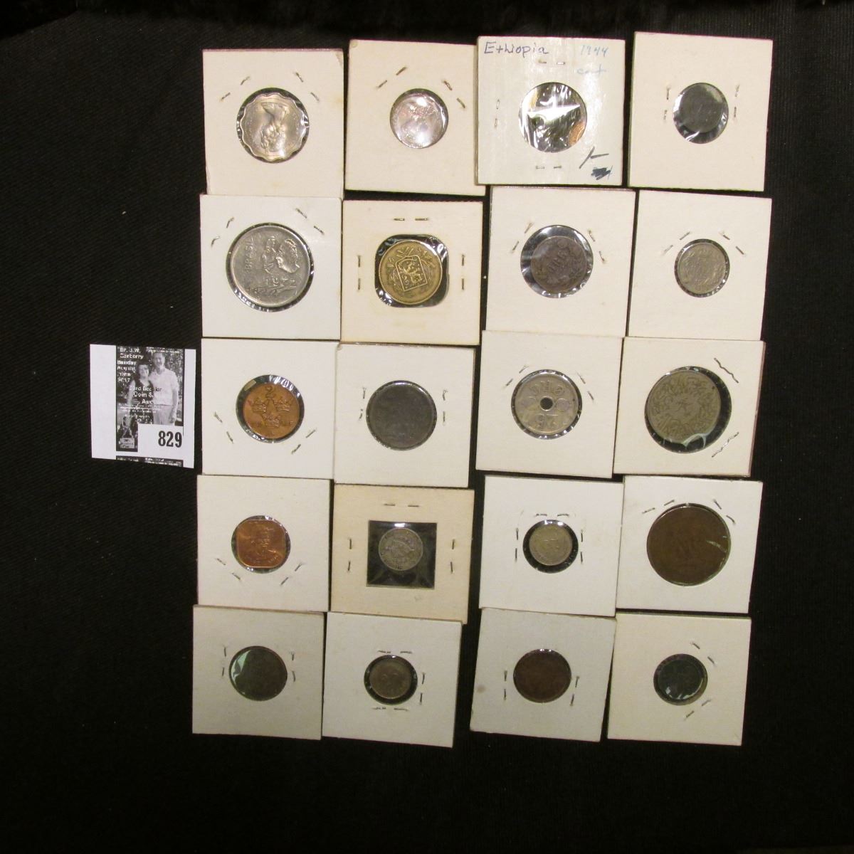 Group of (20) various foreign coins in cardboard holders, all attributed.