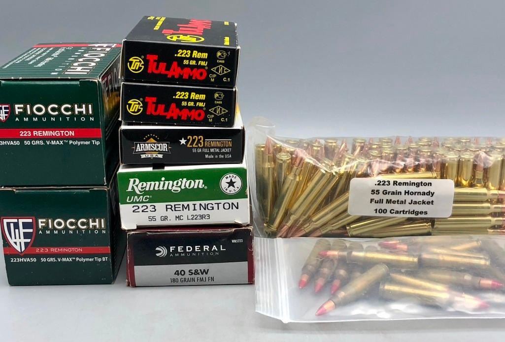 For sale in this lot is a group of .223 ammo which includes two boxes of Fiocchi Ammo, one box of TulAmmo, one box of Remington, one box of Federal, and one box of Armscor along with two generic bags of ammo. We roughly estimated approx. 300 rounds. Maker: Various. Approx. Age: Vintage. Size: .223 caliber. Condition: Good. Please look closely at the pictures - they are an important part of our description. Shipping: There will be a $10 handling / packaging fee for shipping this lot. The actual cost of postage will be added on top of that. BUY IT NOW: If you would like to buy this item now without waiting for the auction to end (this option is only available up to 48 hours before the auction starts to close), the “Buy it Now” price is the high estimate of this lot. If you would like to end the auction early and pay the high estimate (plus applicable fees), please contact us by phone or email and reference this lot number.