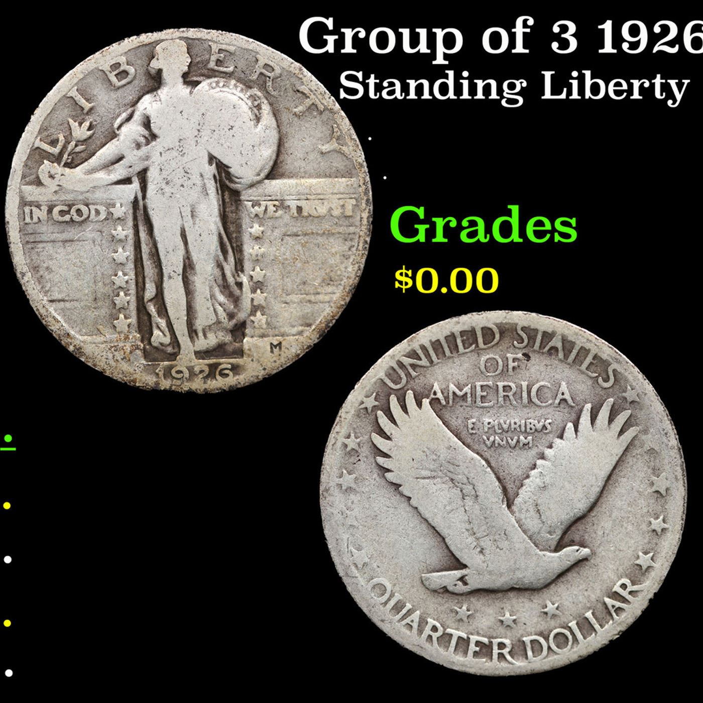 Group of 3 1926-p, 1928-d, 1928-s Standing Liberty Quarter 25c. 0