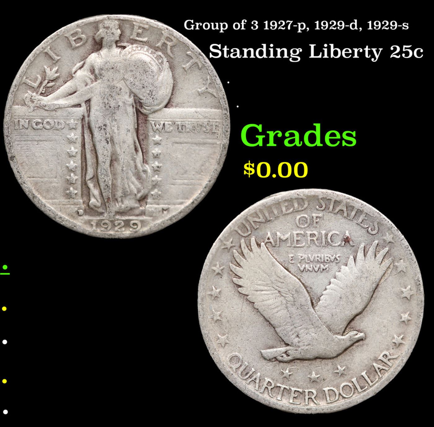 Group of 3 1927-p, 1929-d, 1929-s Standing Liberty Quarter 25c. 0
