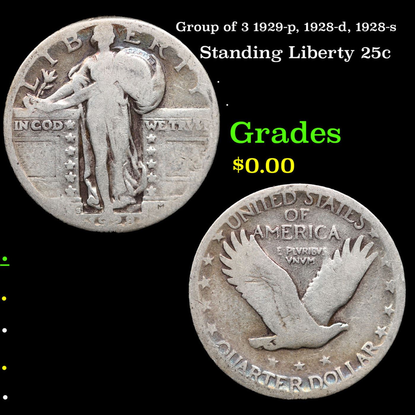 Group of 3 1929-p, 1928-d, 1928-s Standing Liberty Quarter 25c. 0
