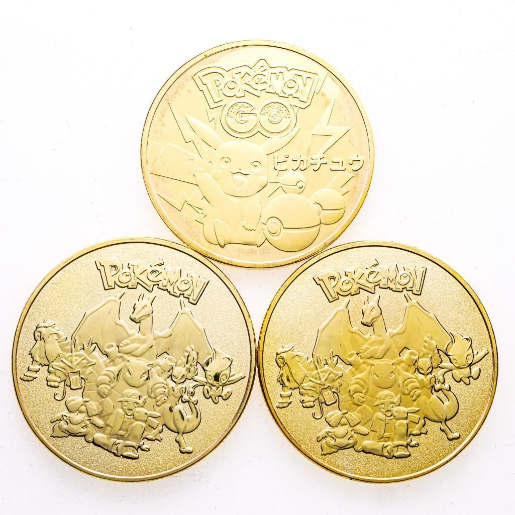 Group of 3 24kt Gold Overlay Pokemon Medallions. Random Picks