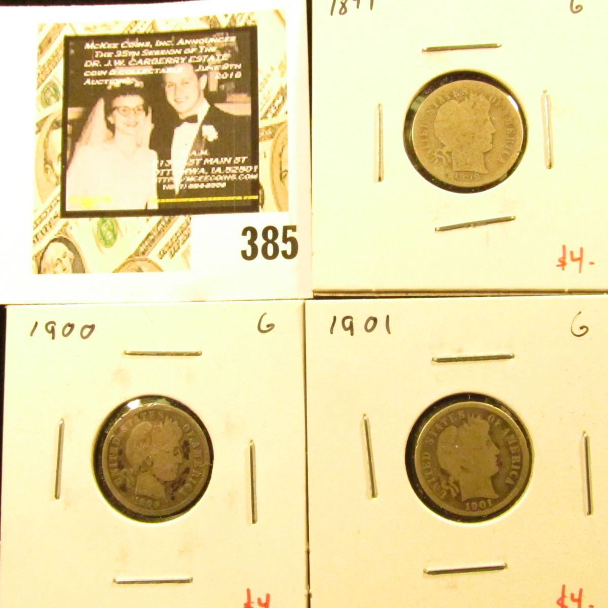 Group of (3) Barber Dimes, 1899, 1900, 1901, all G, group value $12