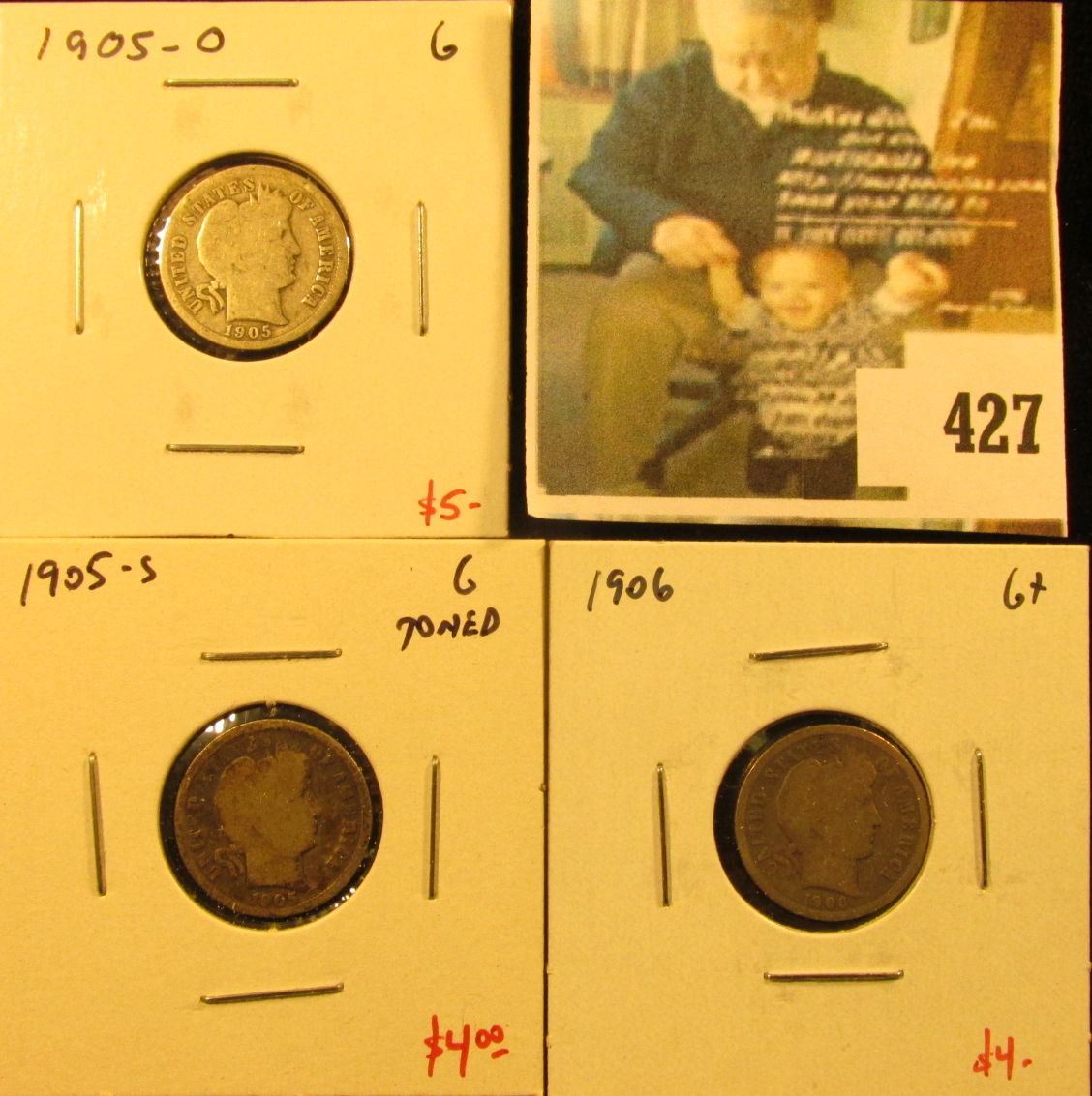 Group of (3) Barber Dimes, 1905-O, 1905-S, 1906, all G, group value $13