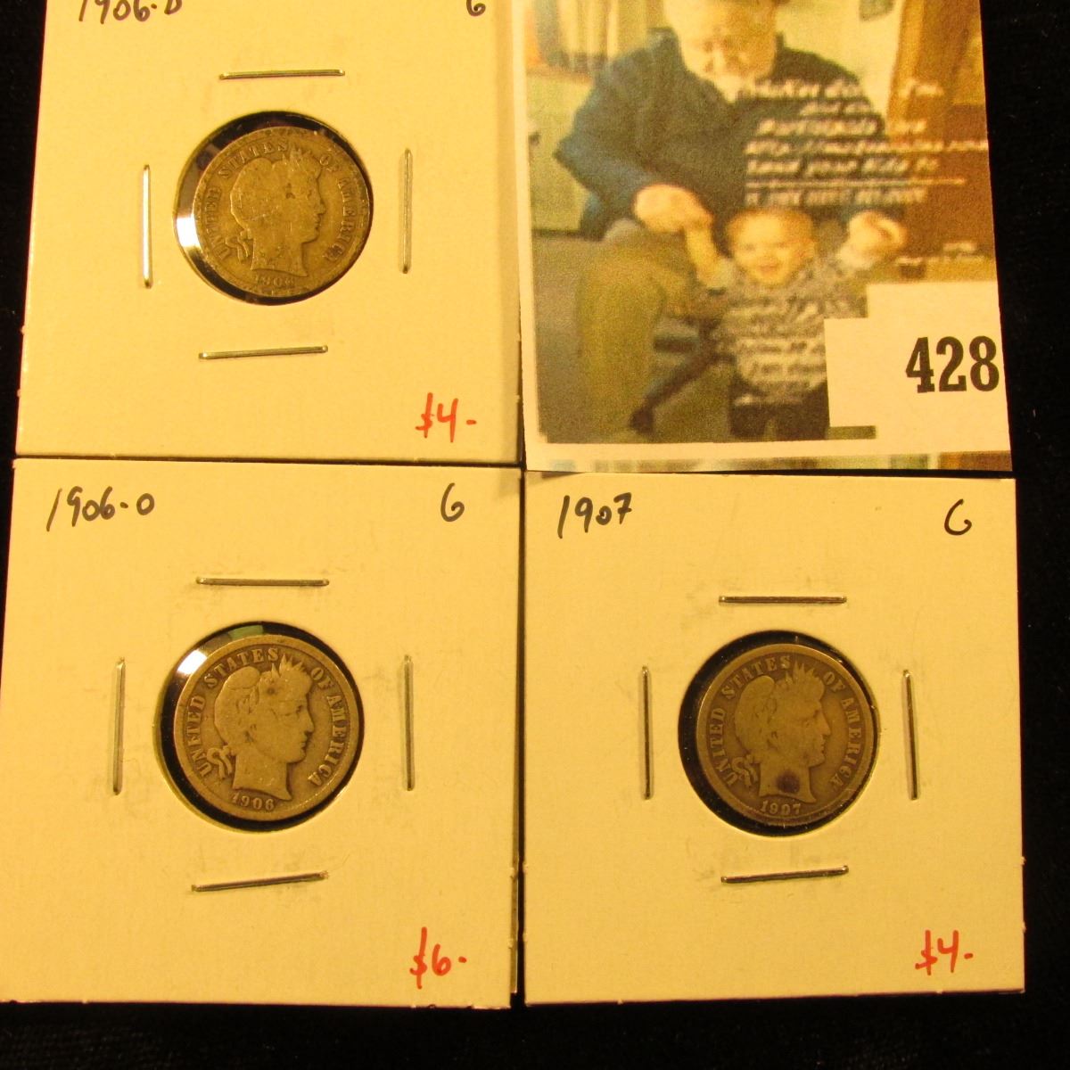 Group of (3) Barber Dimes, 1906-D, 1906-O, 1907, all G, group value $14