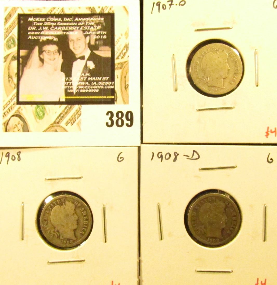 Group of (3) Barber Dimes, 1907-O, 1908, 1908-D, all G, group value $12