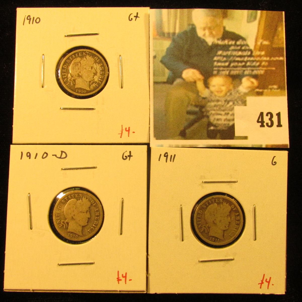 Group of (3) Barber Dimes, 1910, 1910-D, 1911, all G, group value $12