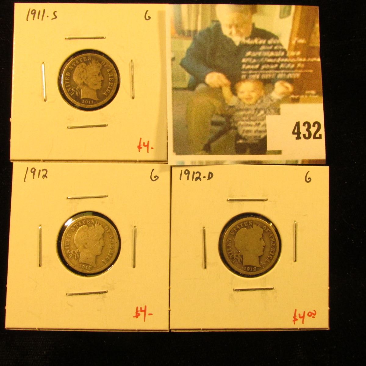 Group of (3) Barber Dimes, 1911-S, 1912, 1912-D, all G, group value $12
