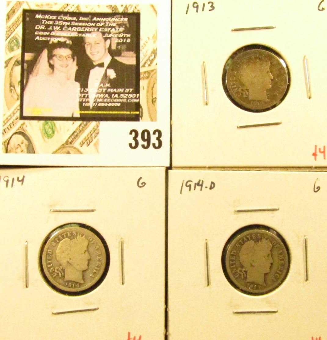 Group of (3) Barber Dimes, 1913, 1914, 1914-D, all G, group value $12