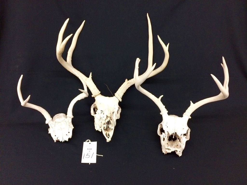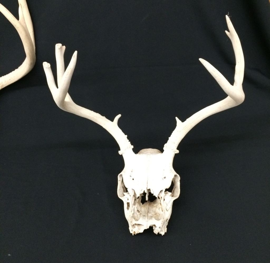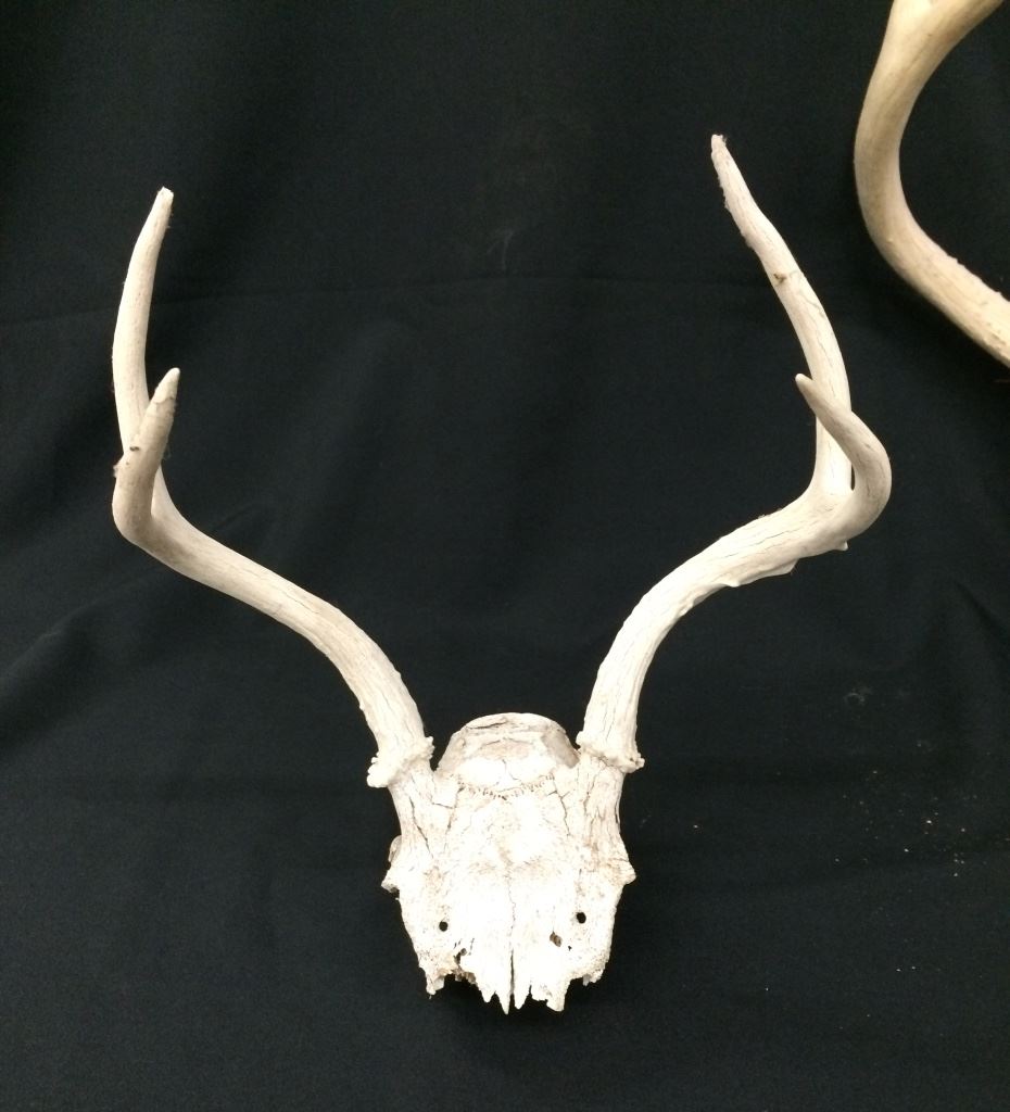 All 3 of these great decorator deer skulls / racks come together for 1 money in this lot! They range from 12” tall by 9” wide on the smallest one to 18” X 18” on the largest one. Please look closely at pics.