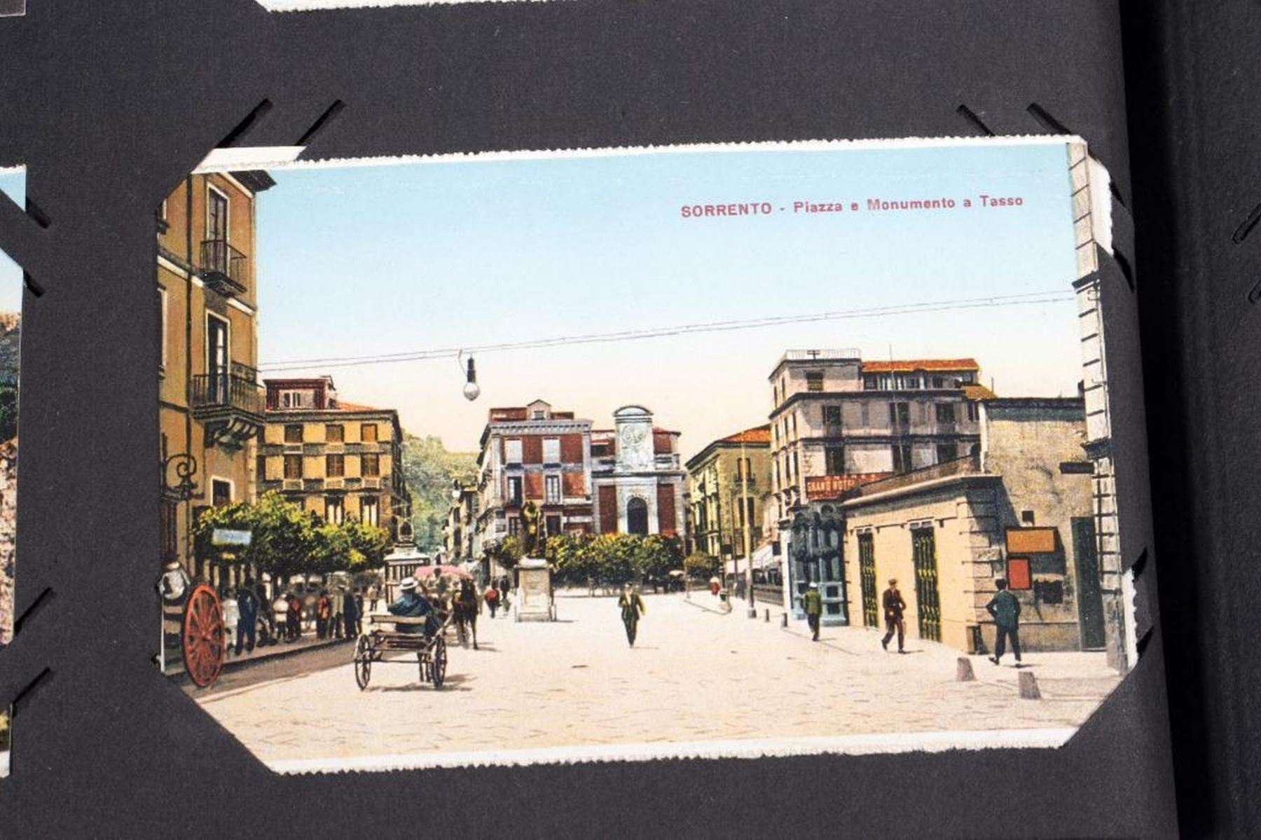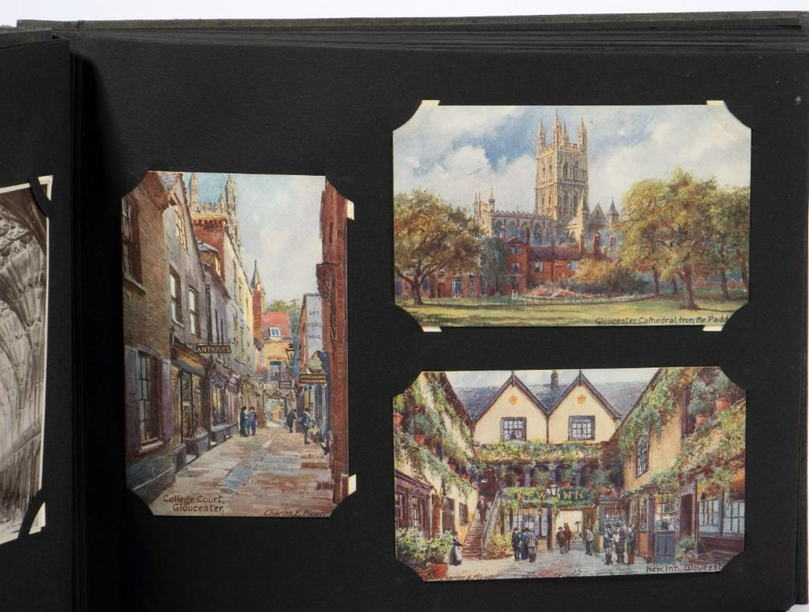 The smaller album is comprised of approx. 195 mostly unsent postcards of Britain. The other two albums are identified as being from the 1928 European trip of Betty and P. W. Linscott, and together contain approx. 400 mailed and unsent postcards, approx. 55 snapshot photographs, and several pages of tickets and other travel ephemera. Snapshots include several from the sea crossing on the Cunard Line R.M.S. Caronia. The albums and contents are in good condition.