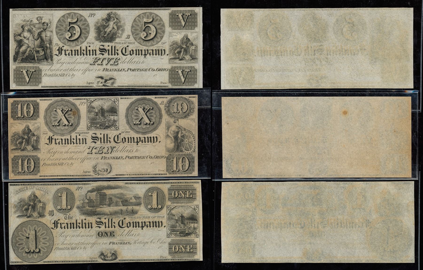 Group of (3) Franklin, OH- Franklin Silk Company $1; $5; $10 18__ Remainder Obsolete Bank Notes,