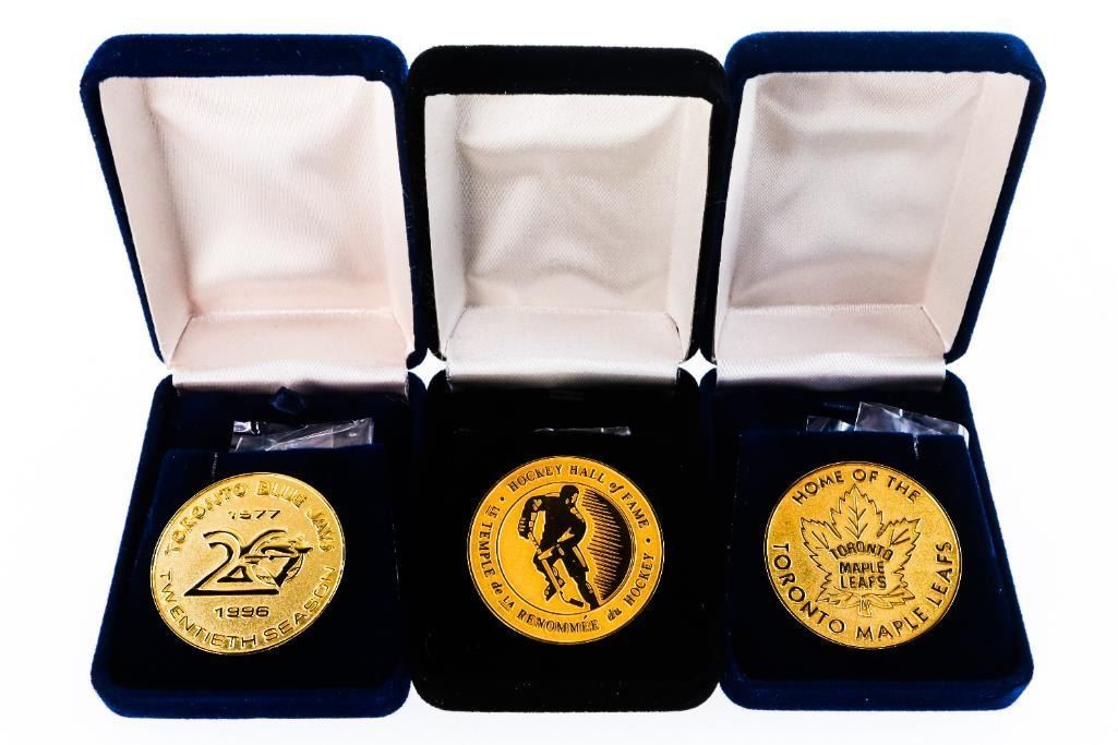 Group of 3 Gold Medallions, Blue Jays, HHOF, Maple Leafs