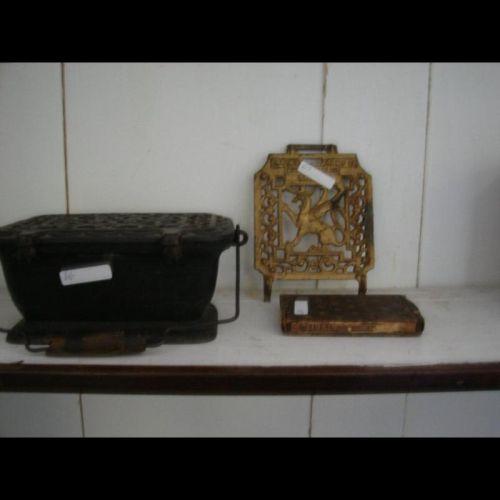 Group of 3 Ironing Items Iron or Barber Stove, Iron Rest, Flat Iron Cleaner Ideal