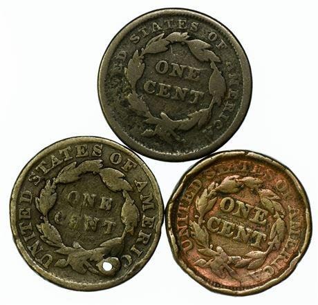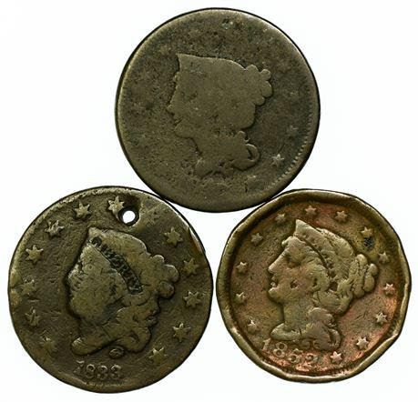 Group of 3 Large Cents 1833, 1842, 1852Estimate: $100