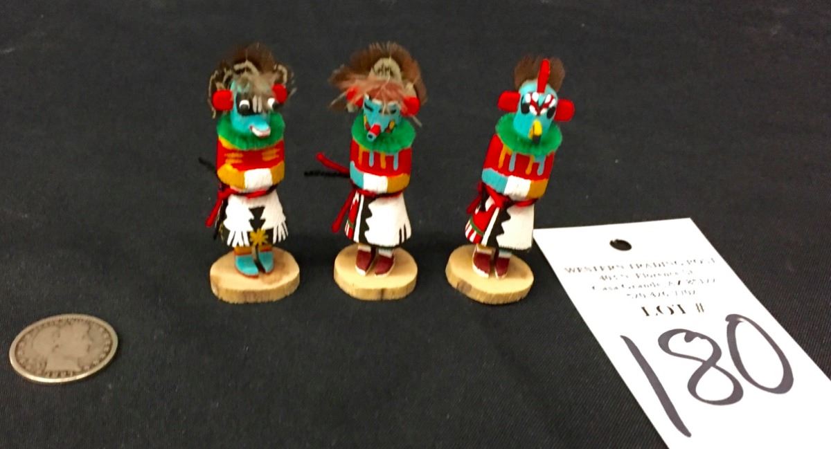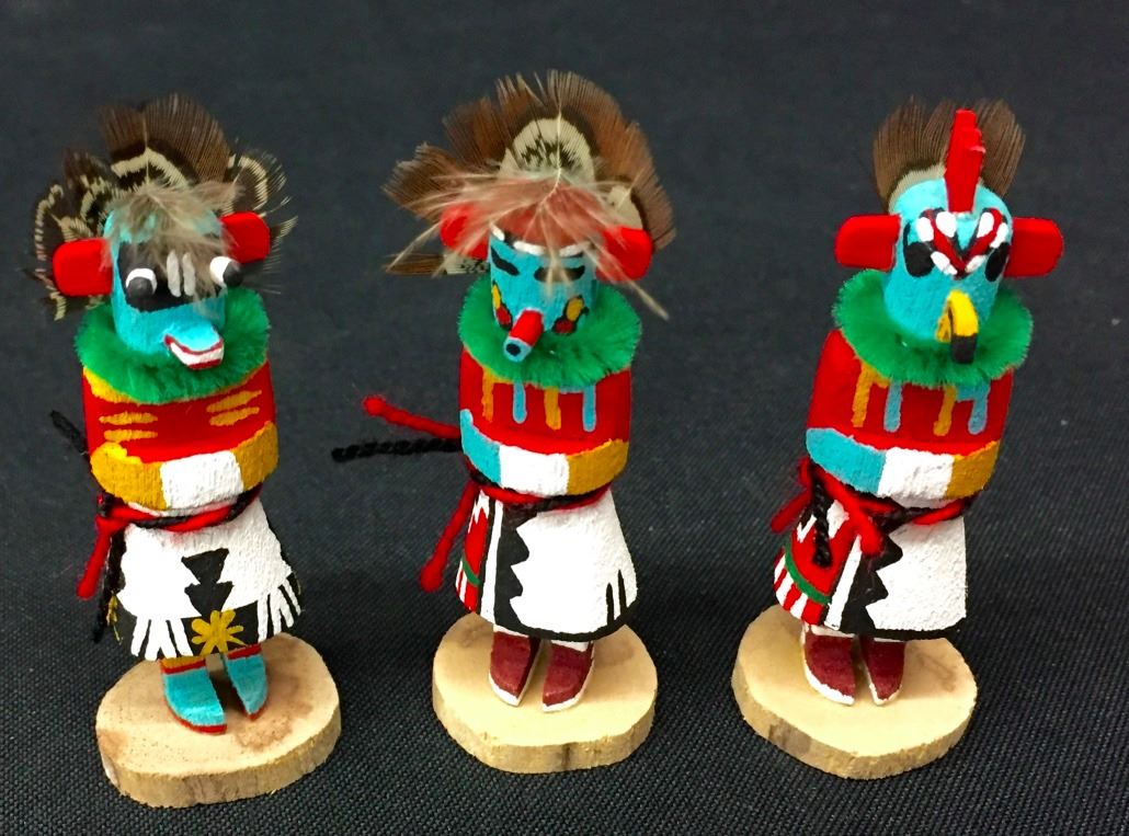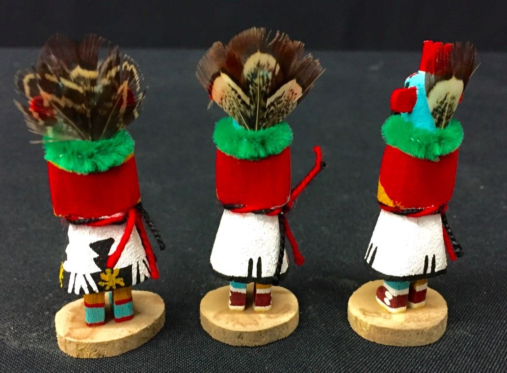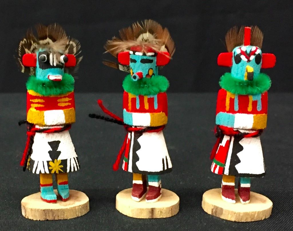 These mini Hopi Kachinas stand approximately 2.5 inches tall each. Made by Loretta Multine. Signed. Please look closely at pics - they are an important part of our description. Shipping: There will be a $5 handling / packaging fee for shipping this lot. The actual cost of postage will be added on top of that.