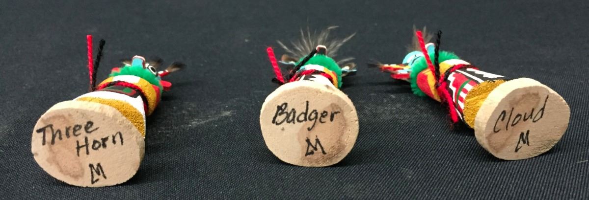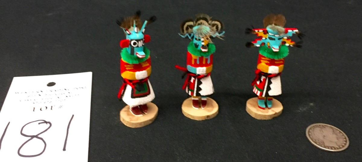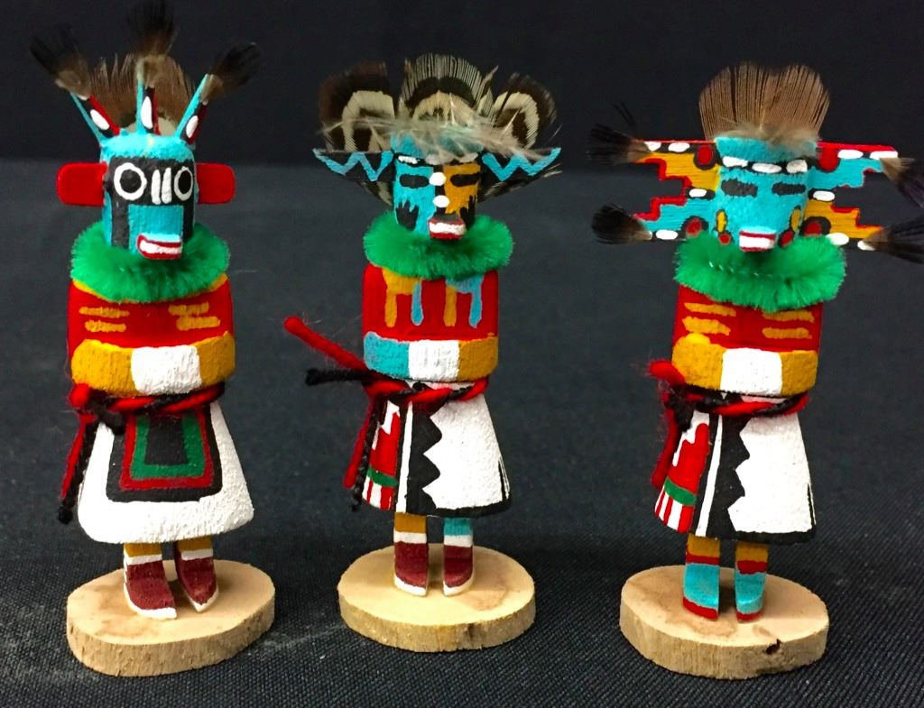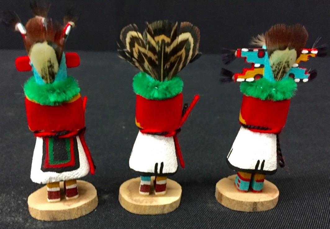 These mini Hopi Kachinas stand approximately 2.5 inches tall each. Made by Loretta Multine. Signed. Please look closely at pics - they are an important part of our description. Shipping: There will be a $5 handling / packaging fee for shipping this lot. The actual cost of postage will be added on top of that.