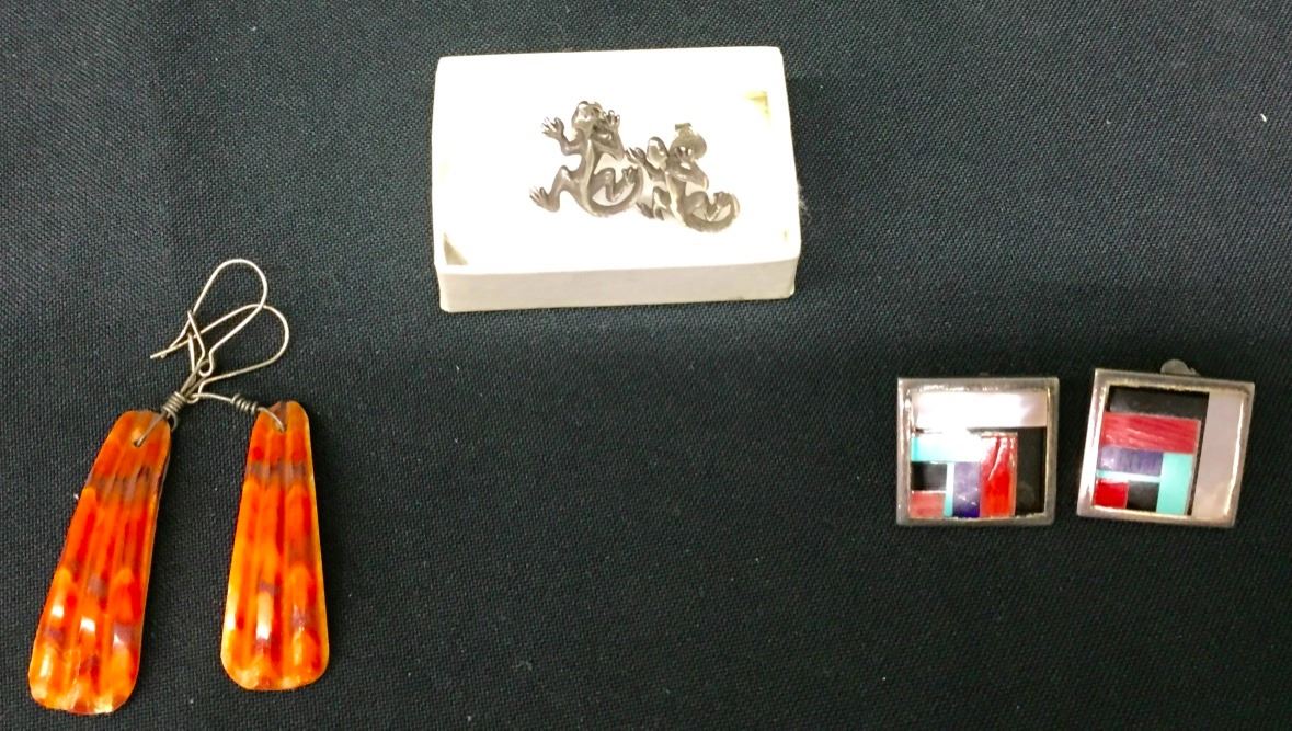 Three great pair of vintage earrings. Unsigned. Sterling where applicable. Please look closely at pics - they are an important part of our description. Shipping: There will be a $5 handling / packaging fee for shipping this lot. The actual cost of postage will be added on top of that.