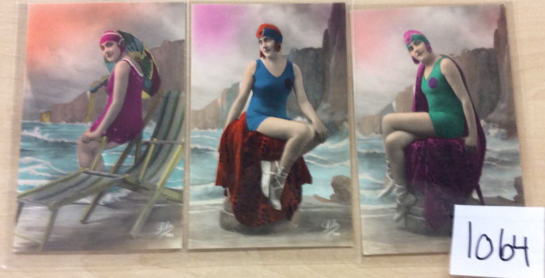 Group of 3 Real Photo Tinted Bathing Beauty Postcards