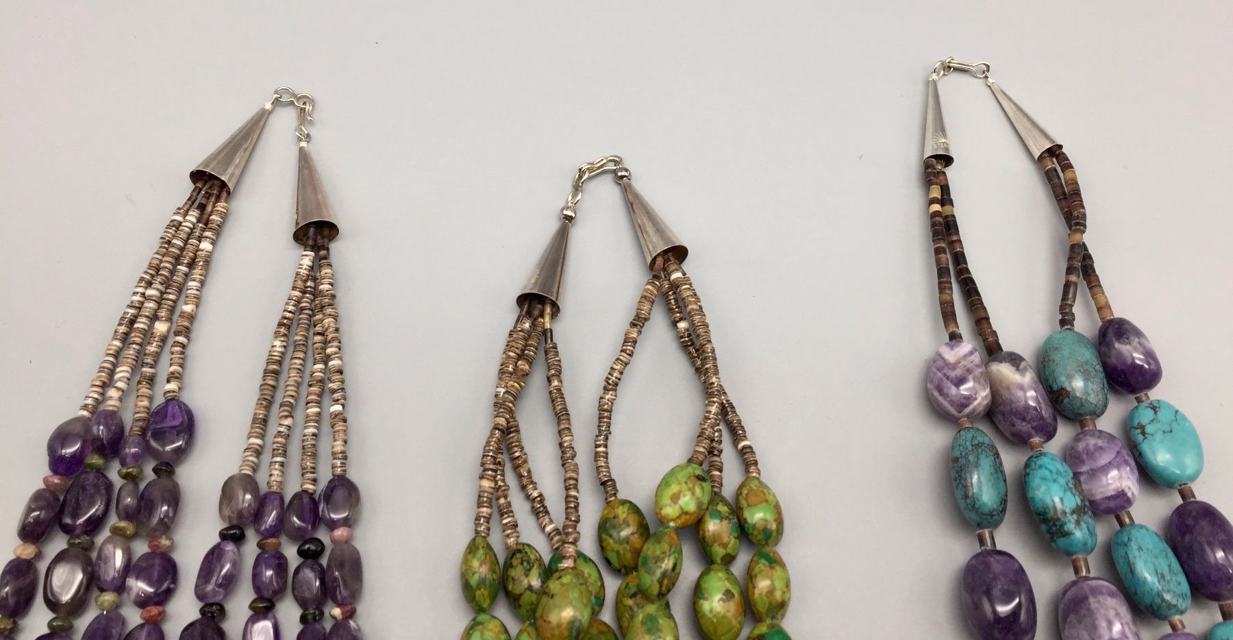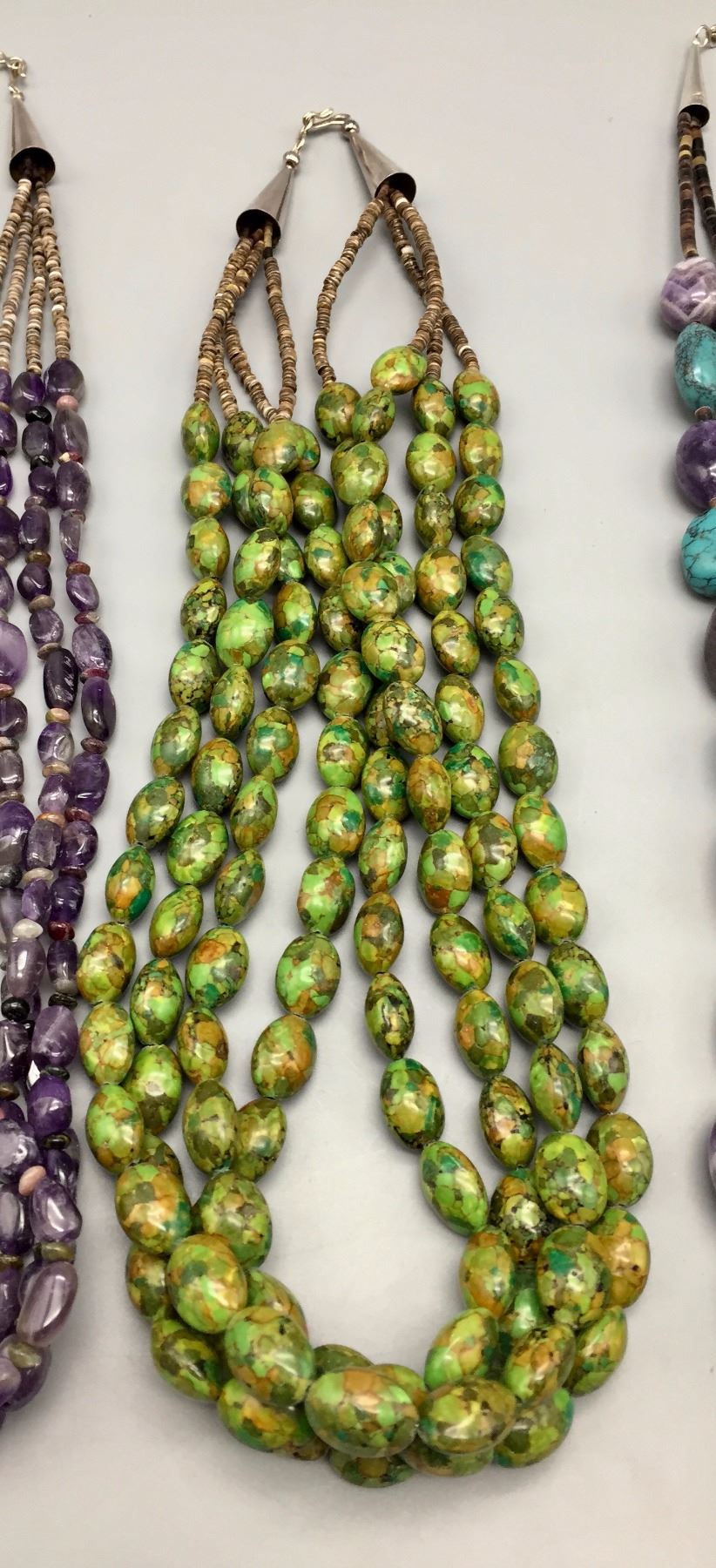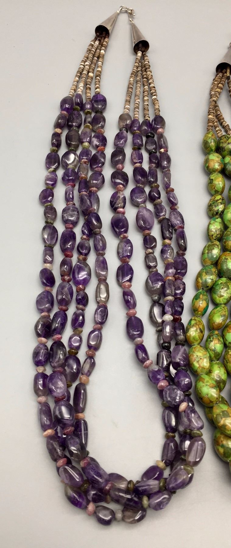 Maker: Unknown makers. Approx. Age: Circa 1980s. Size: Necklaces fit 22” - 24” around the neck. Additional Info: 3 necklaces included. All have sterling findings and various gemstones. Condition: Good for their age, normal wear expected. Please look closely at the pictures - they are an important part of our description. Shipping: There will be a $5 handling / packaging fee for shipping this lot. The actual cost of postage will be added on top of that.