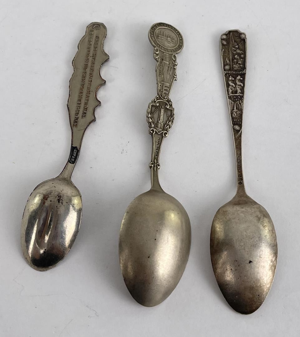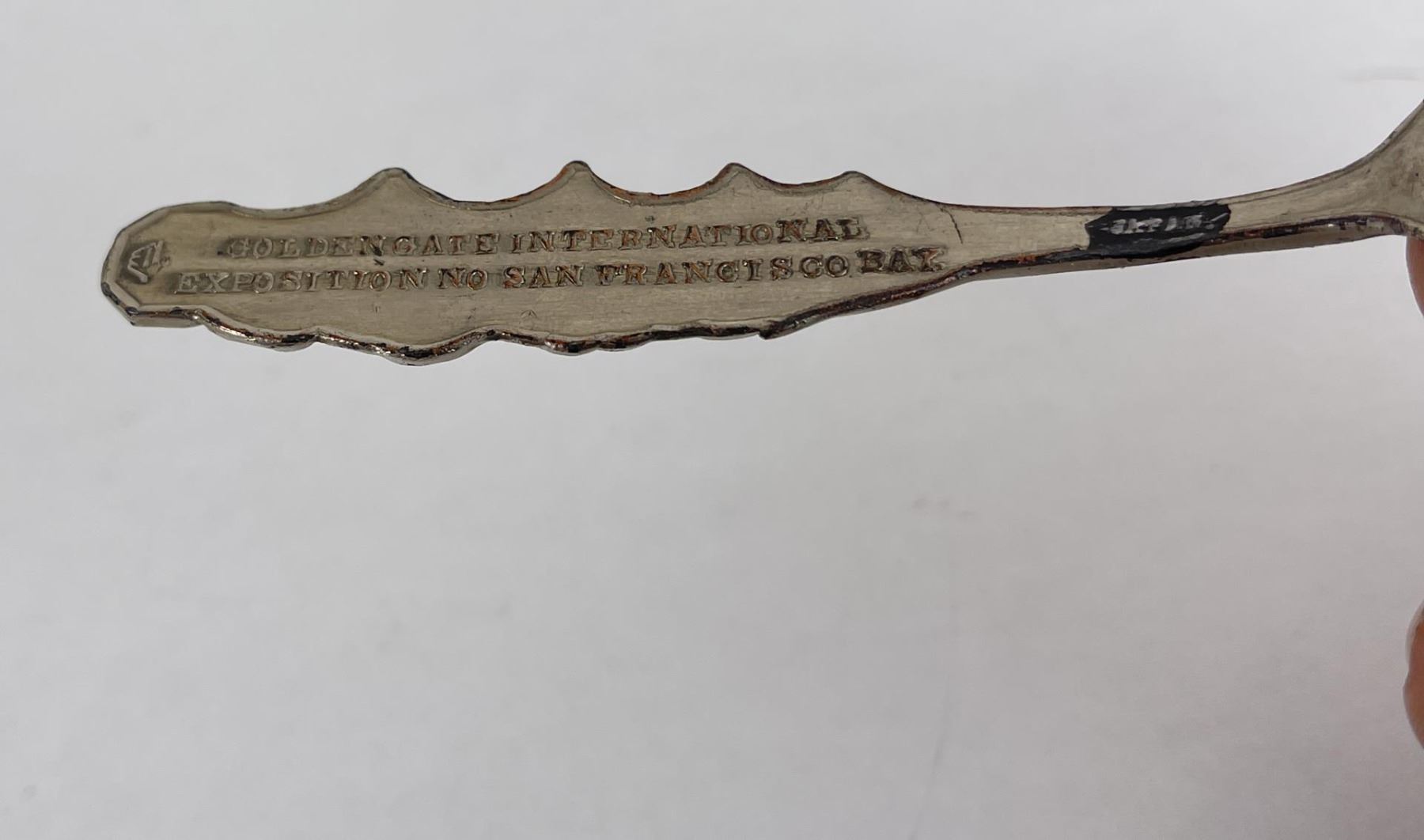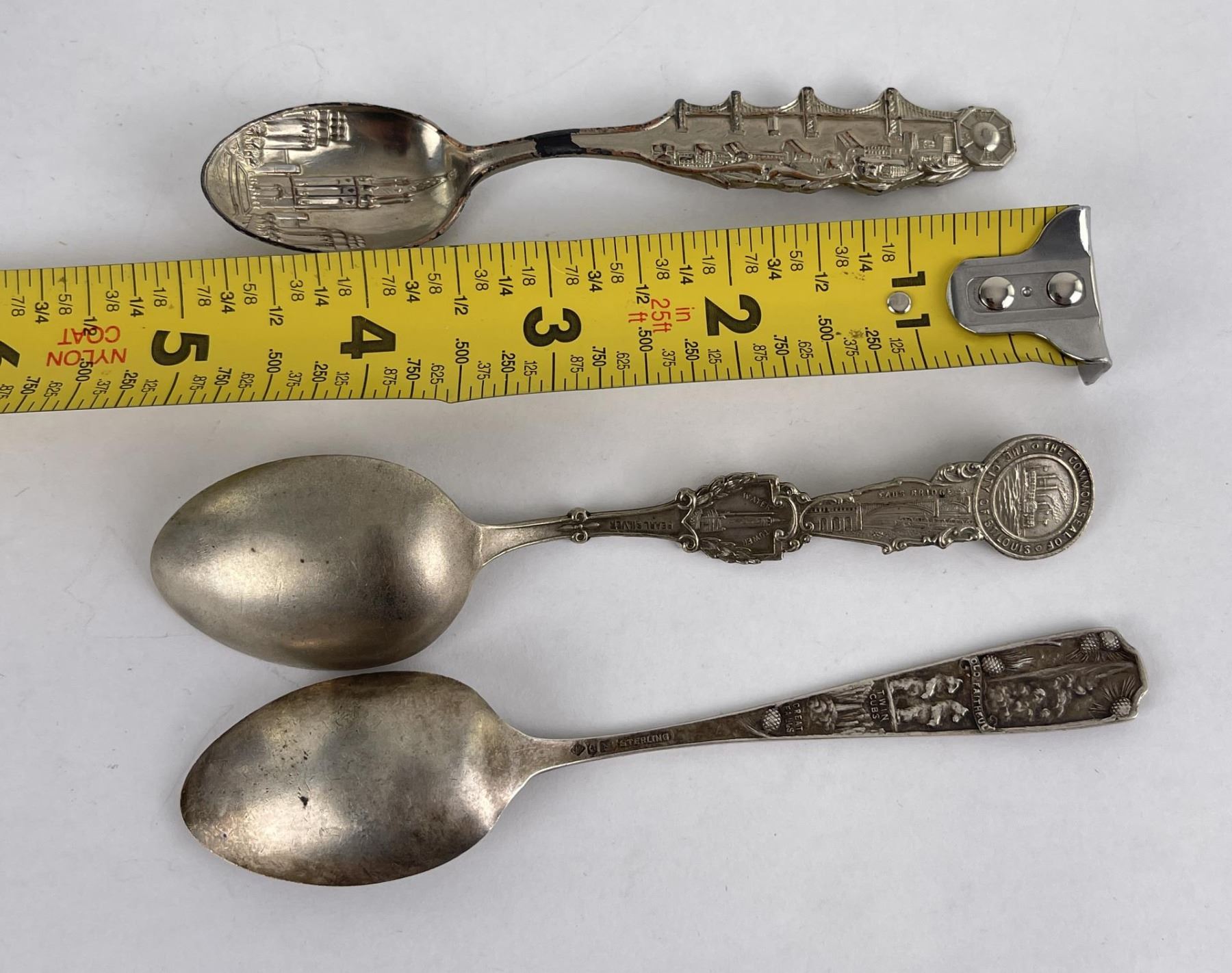 Nice group of spoons. Sterling Silver Yellowstone Park, Plated St Louis Expo, Plated Golden Gate International Expo.