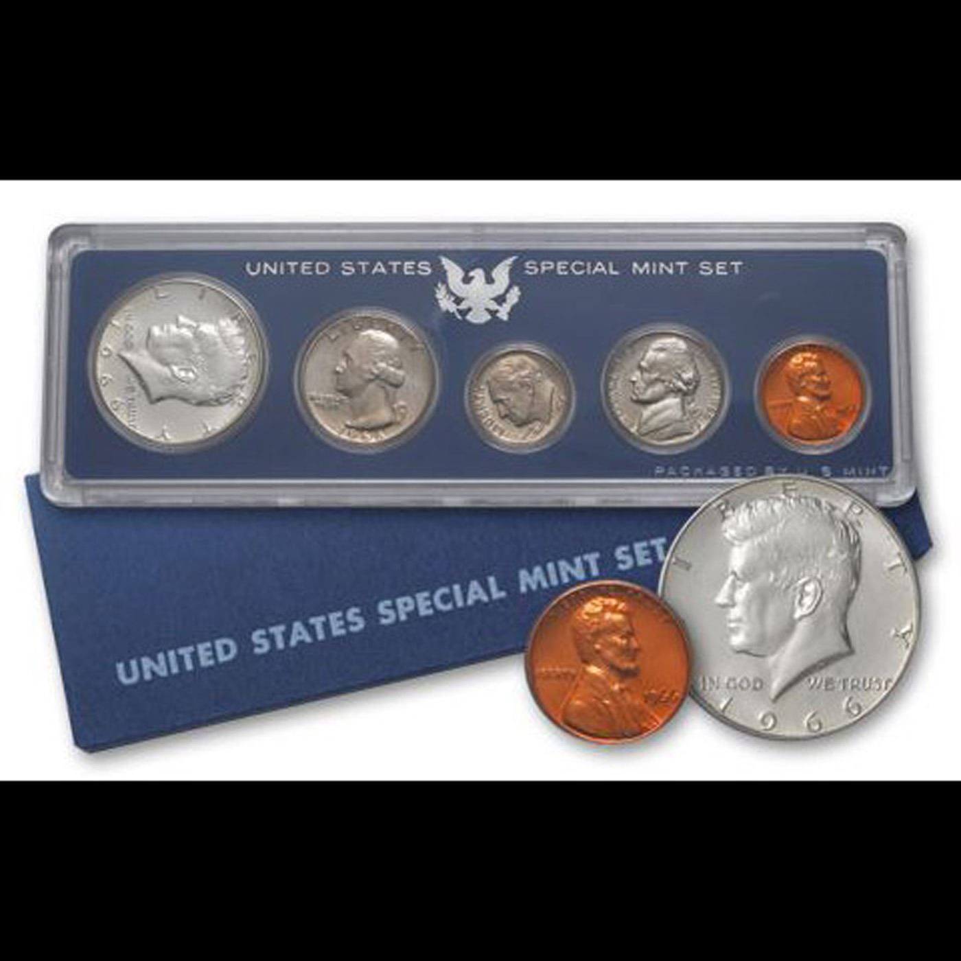 Group of 3 Special Mint Sets 1965-1967 20 coins. In 1964, just when the mint was removing 90% silver coins from circulation, and the us was having a coin shortage, the Mint announced that beginning in 1965, no Proof Sets, or Mint Sets would be produced, Instead they would be making a Special Mint Set. Special Mint Set coins were not proofs, and were not uncirculated, Mint State pieces. Dies for the coins were over polished, while the planchet themselves were not polished. The resulting SMS coins have a brilliant, proof like appearance, much nicer than the run-of-the-mill circulation coins. In 1965 these sets were released in the Traditional Mint Cellophane and White Envelope and in 1966 and 1967 they were packaged in hard, pale blue plastic holders. Note, the set contains a 40% Half Dollar.