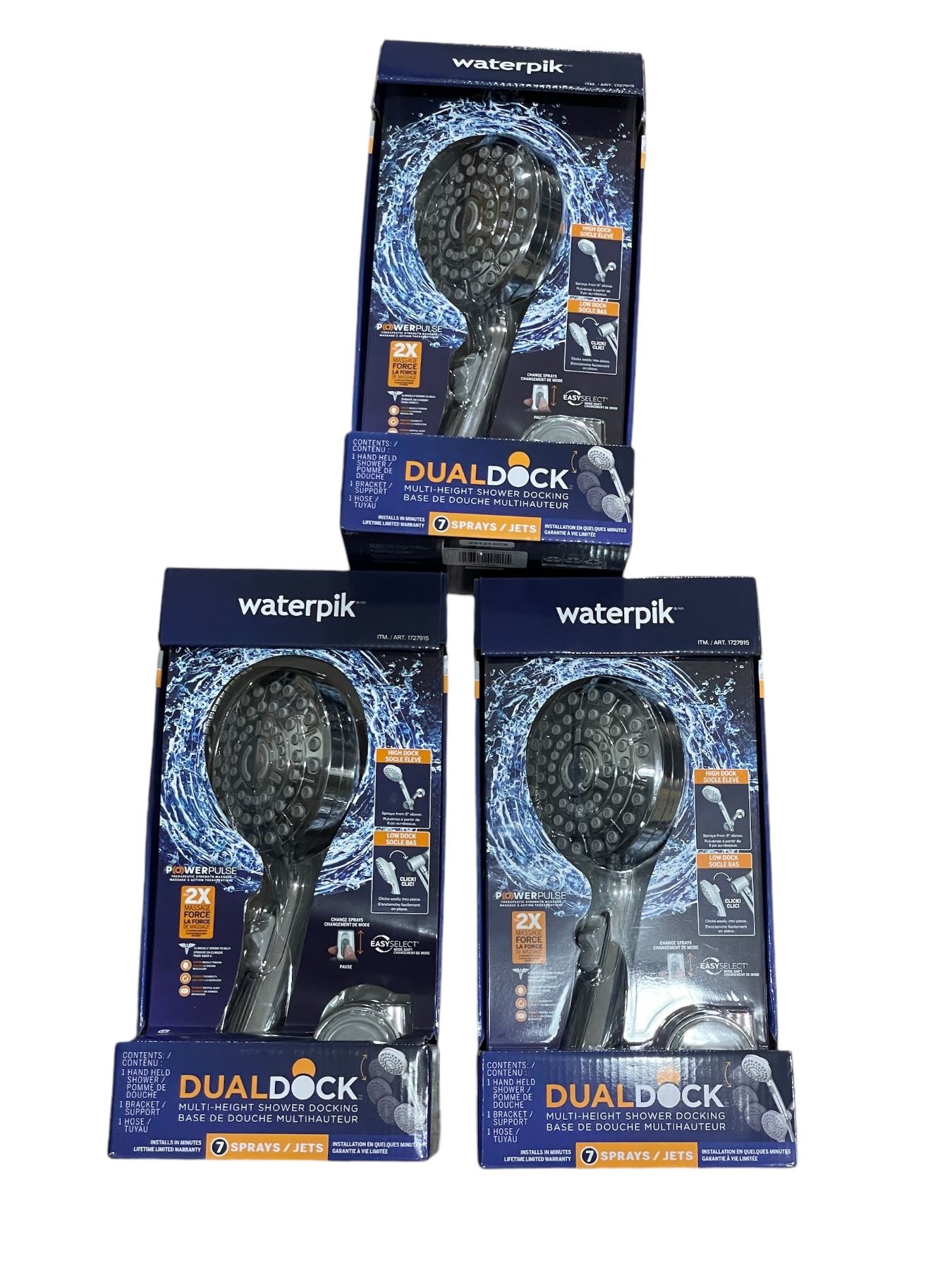 Group of 3 Waterpik dual dock shower dockings