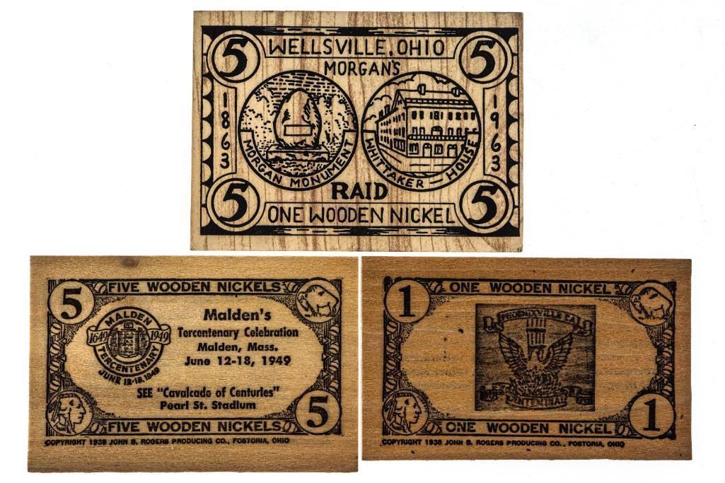 Group of 3 Wooden Nickels -1949-1963 Scrip