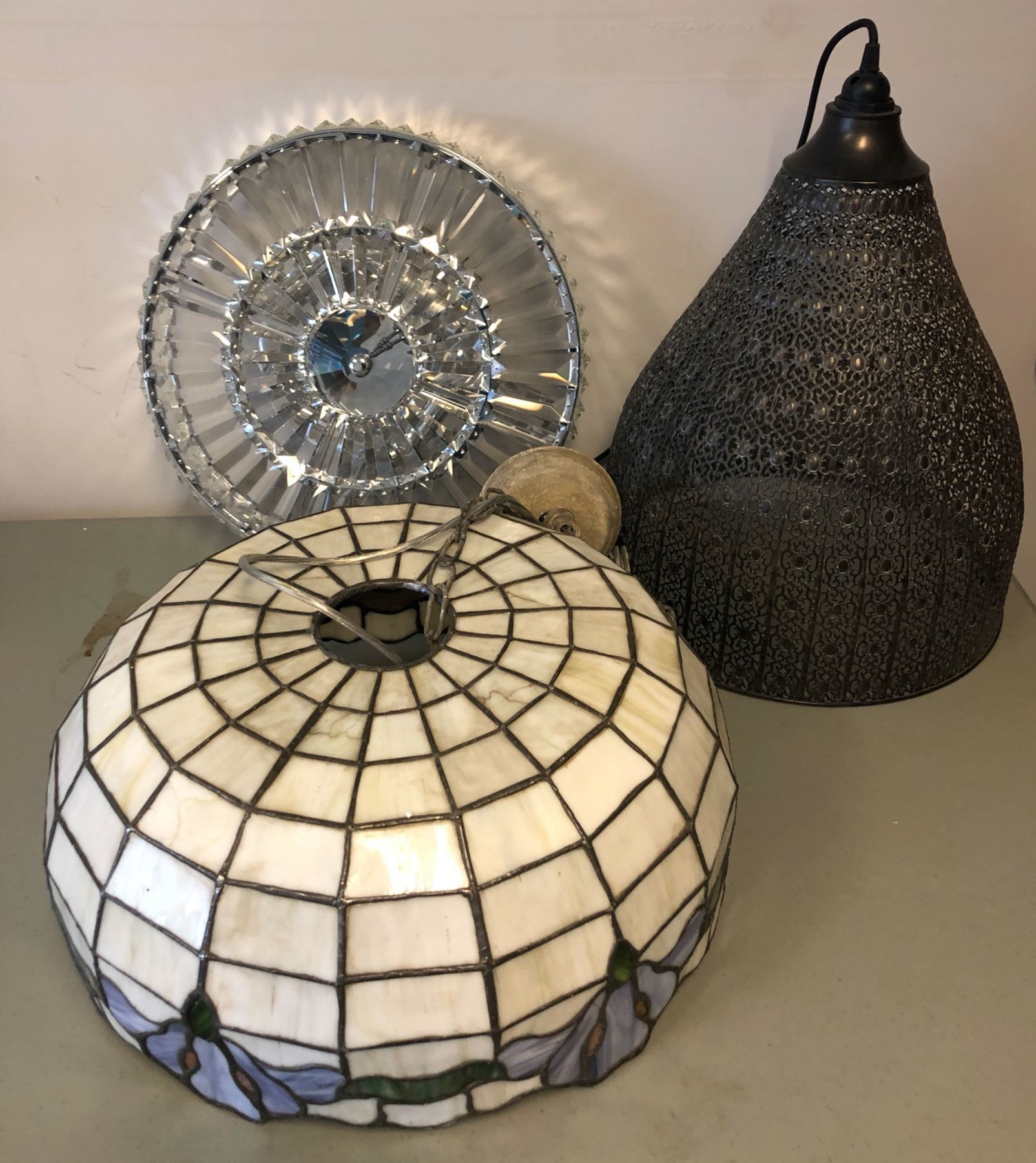 Group of 3 assorted decorative ceiling light fixtures - includes Tiffany style stained glass shade fixture