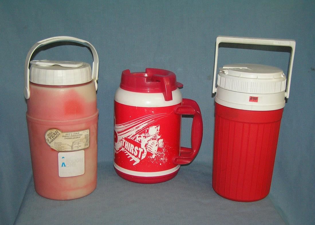 Group of 3 beverage cooler bottles great for beach, barbecue or work 1 handle condition as found est. value $25.00-$30.00