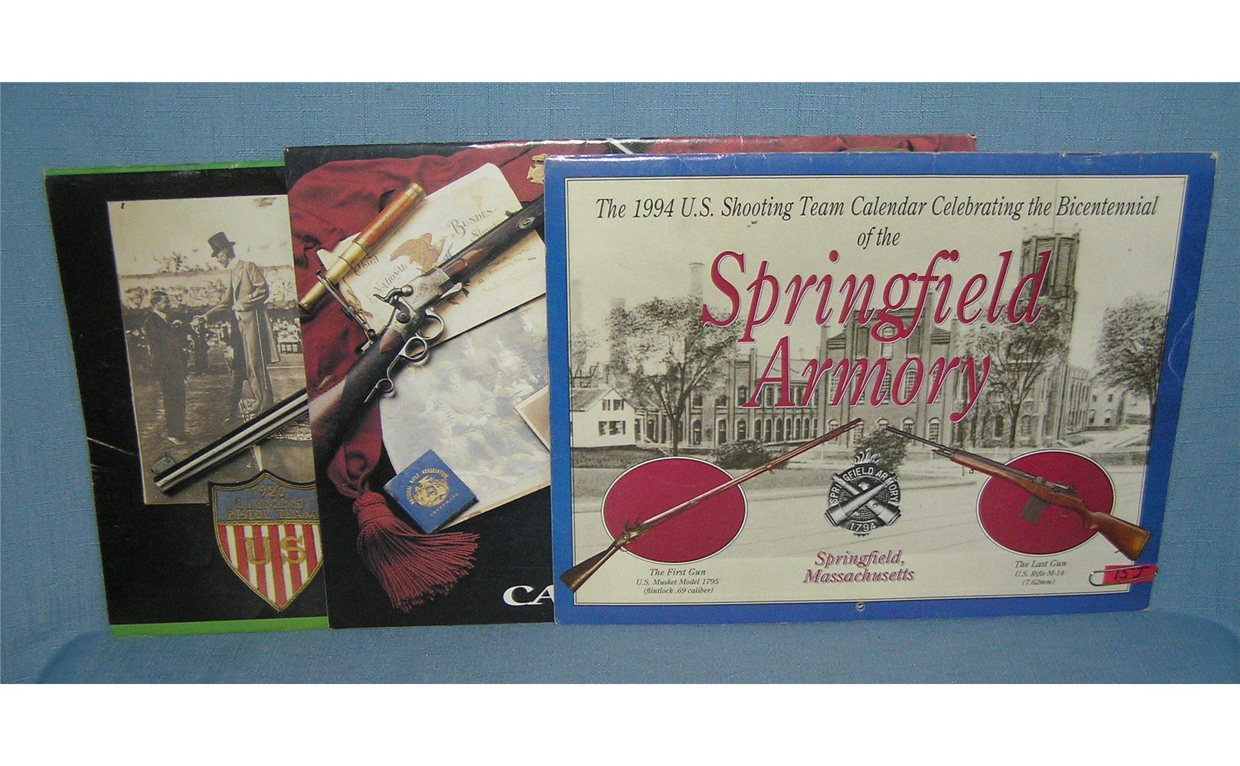 Group of 3 fire arms display calendars pictural display calendars all loaded with classic rifles and hand guns of the past est. value $30.00-$35.00