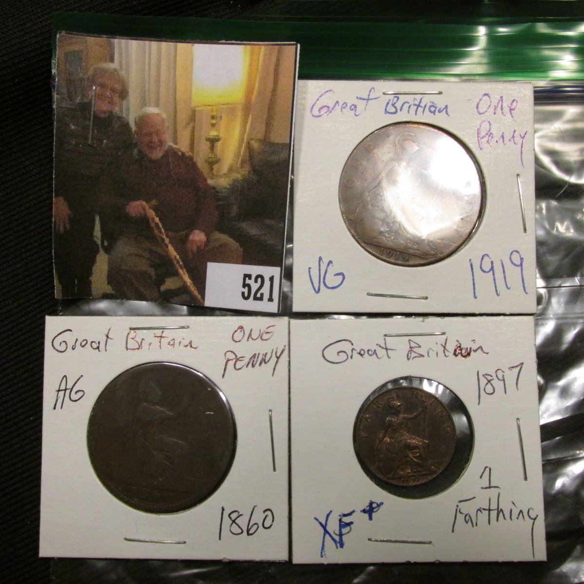 Group of 3 from Great Britain - 1860 1 Penny AG, 1919 1 Penny VG, 1897 1 Farthing XF (better date)