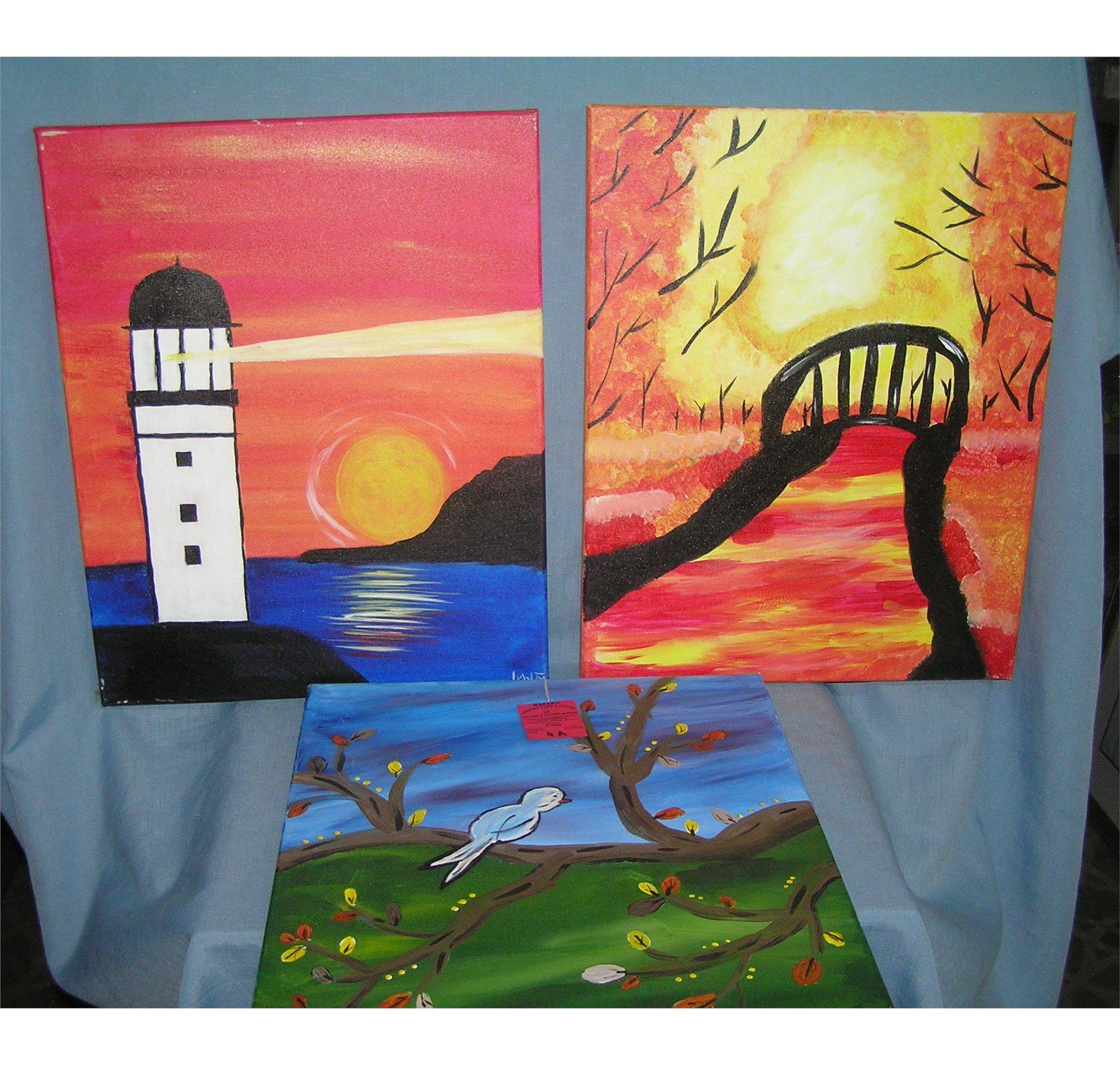 Group of 3 modern oil on canvas paintings, est. value $40.00-$50.00 moving and storage co. seized merchandise
