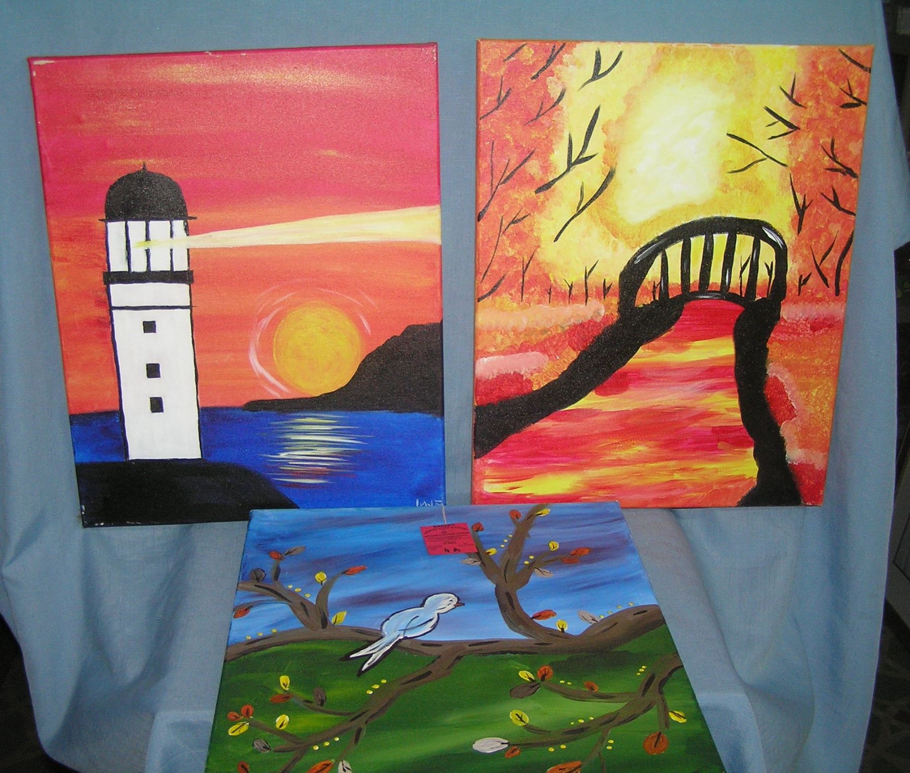 Group of 3 modern oil on canvas paintings, est. value 40.00-50.00 moving and storage co. seized merchandise