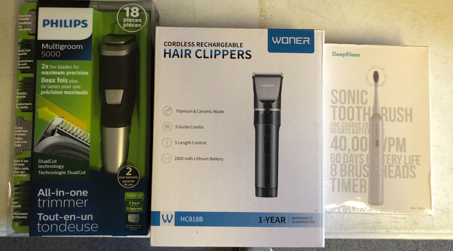 Group of 3 personal care items - includes Philips all-in-one trimmer/ Woner hair clippers & new DeepKlean sonic toothbrush