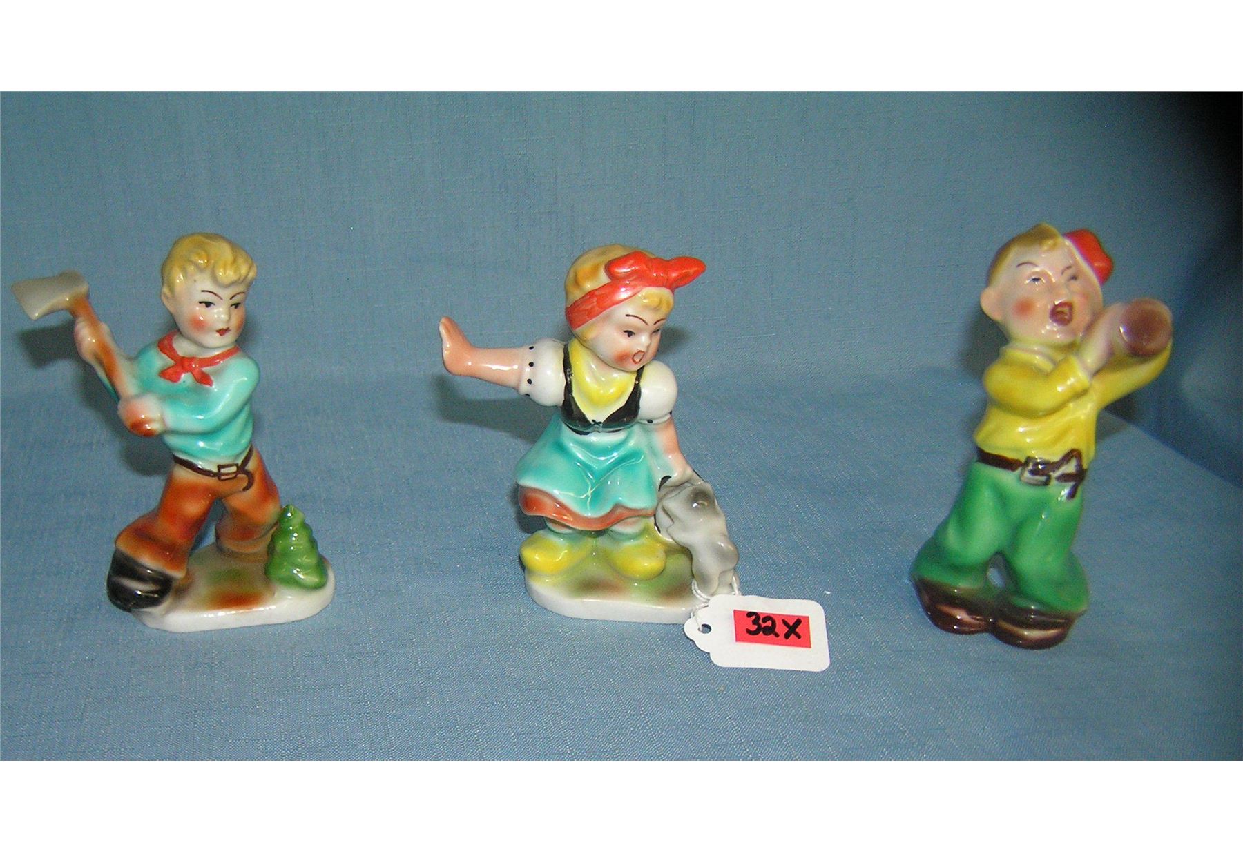 Group of 3 signed German hand painted figurines marked Plein Speicher Germany est. value $150.00-$200.00