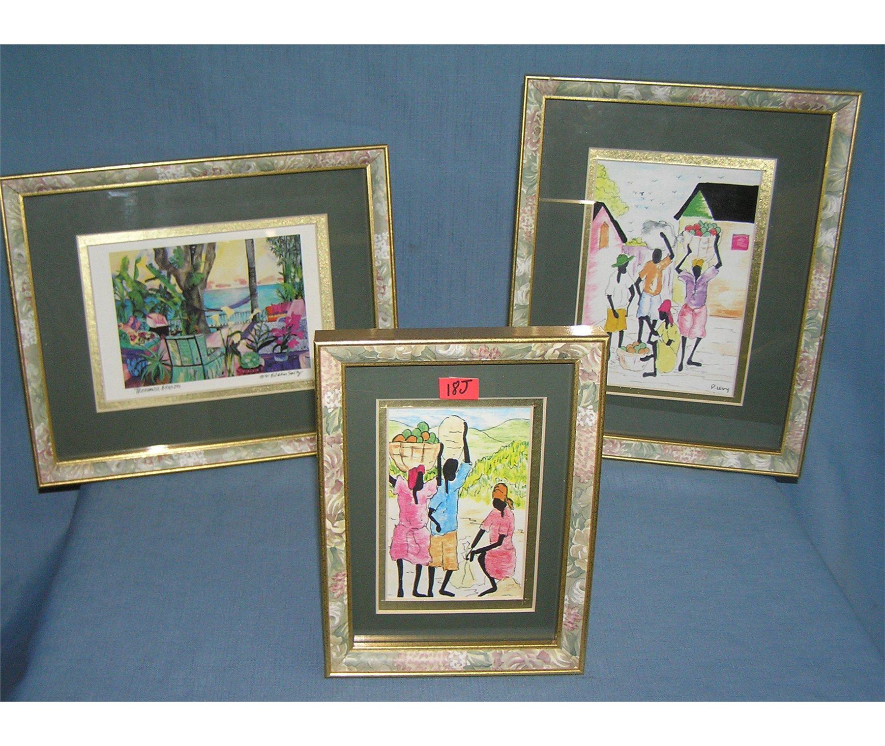 Group of 3 signed modern art pieces all professionally framed est. value $80.00-$100.00