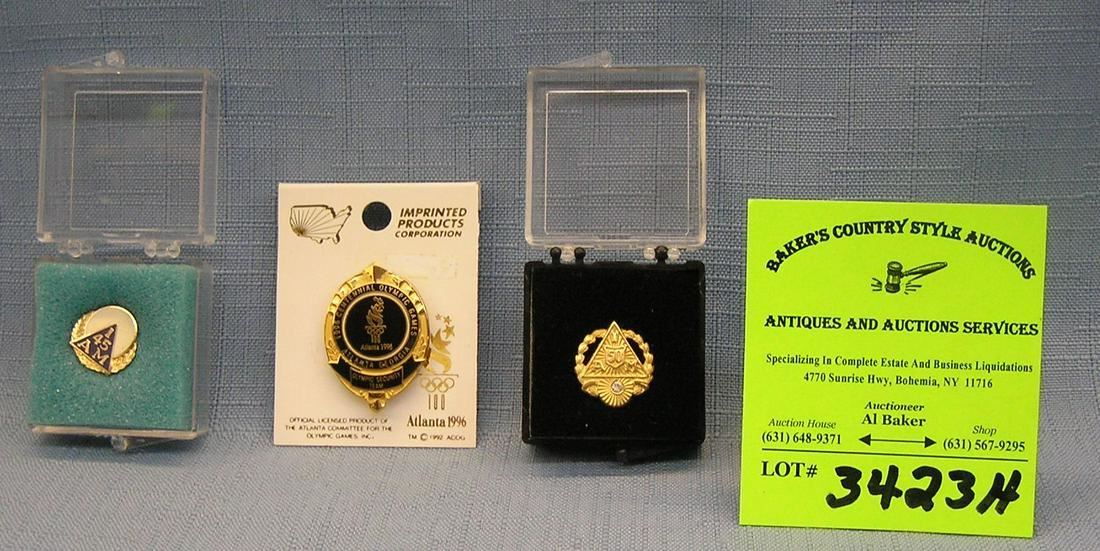 Group of 3 vintage pins including Olympics and one with a diamond chip est. value $50.00-$65.00