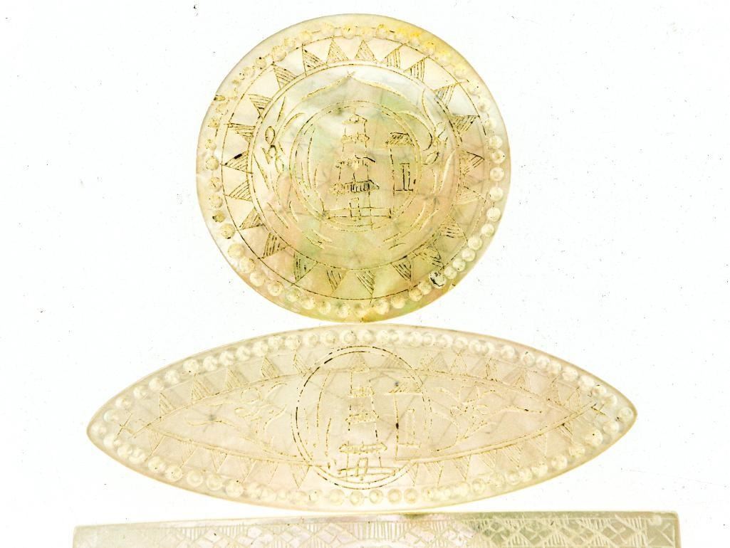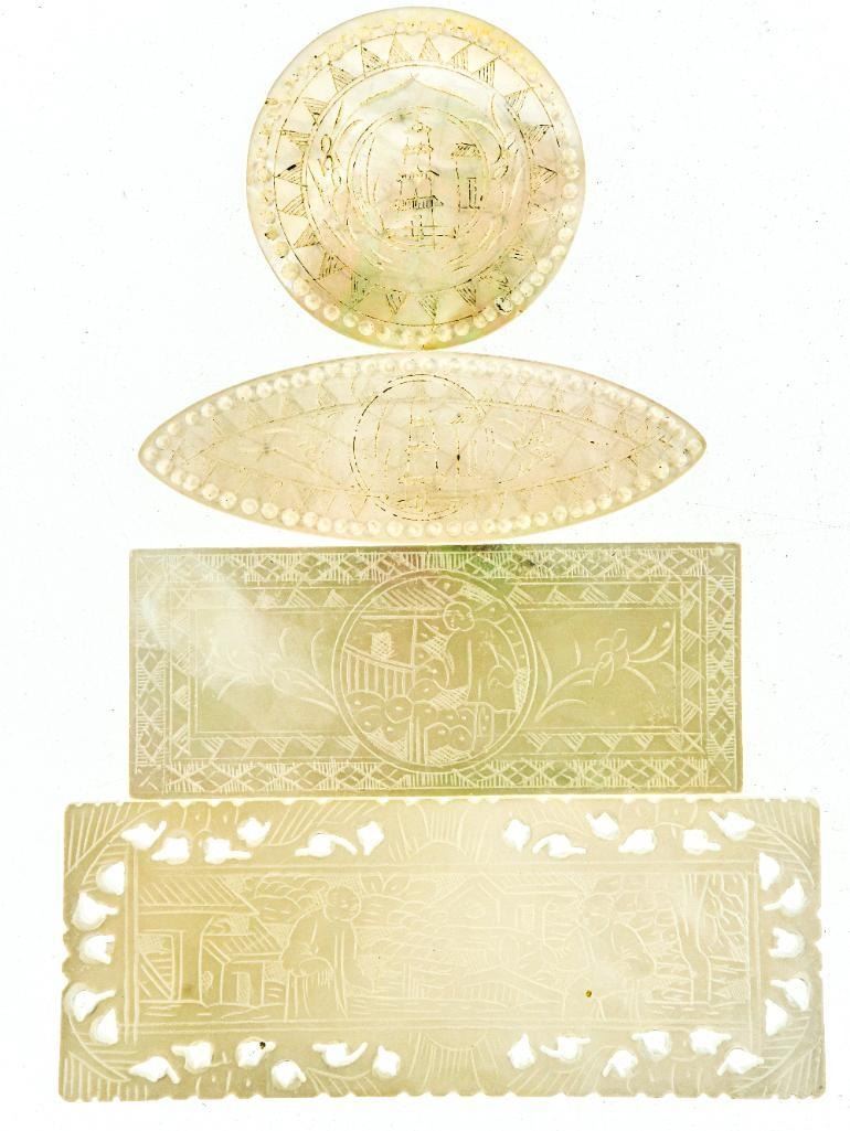 Group of 4 Antique Gaming Markers. Mother of Pearl gaming Markers were handcrafted by artisans in China. C1700-1884