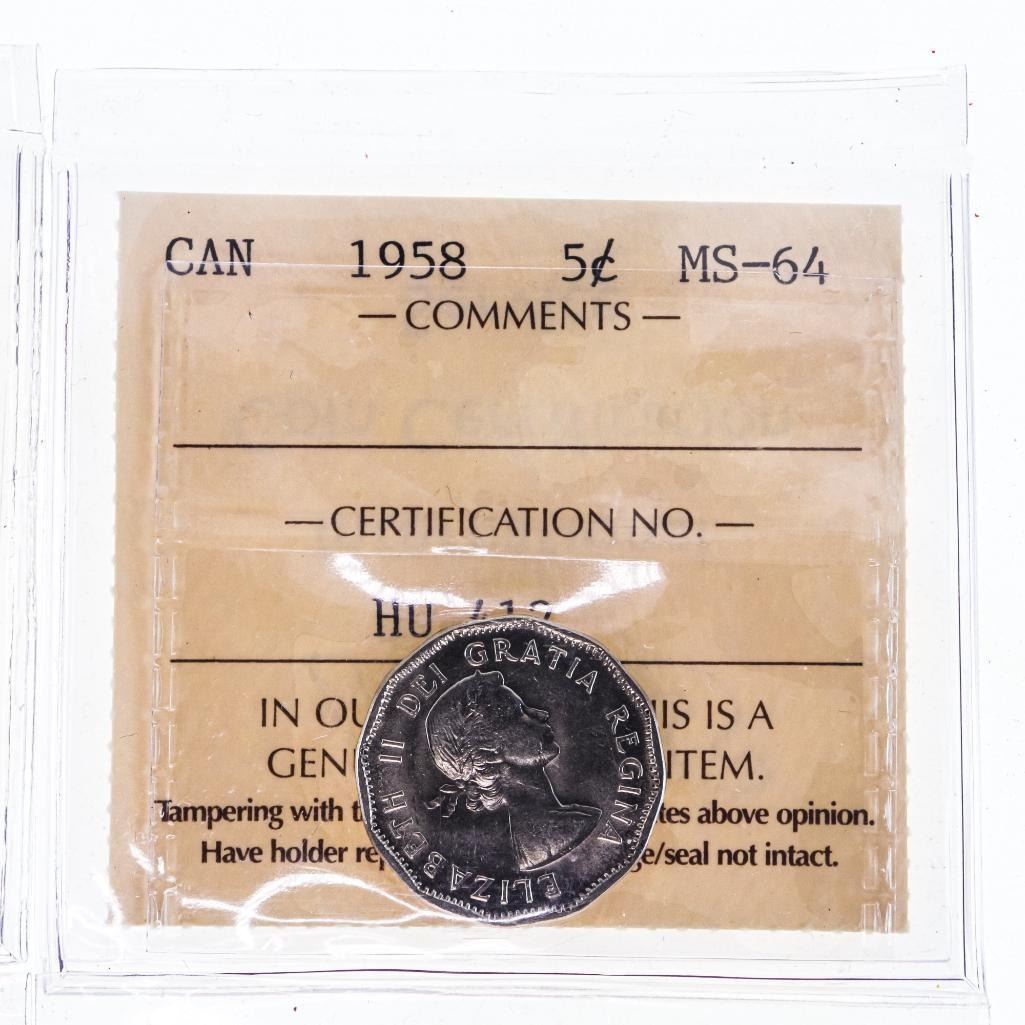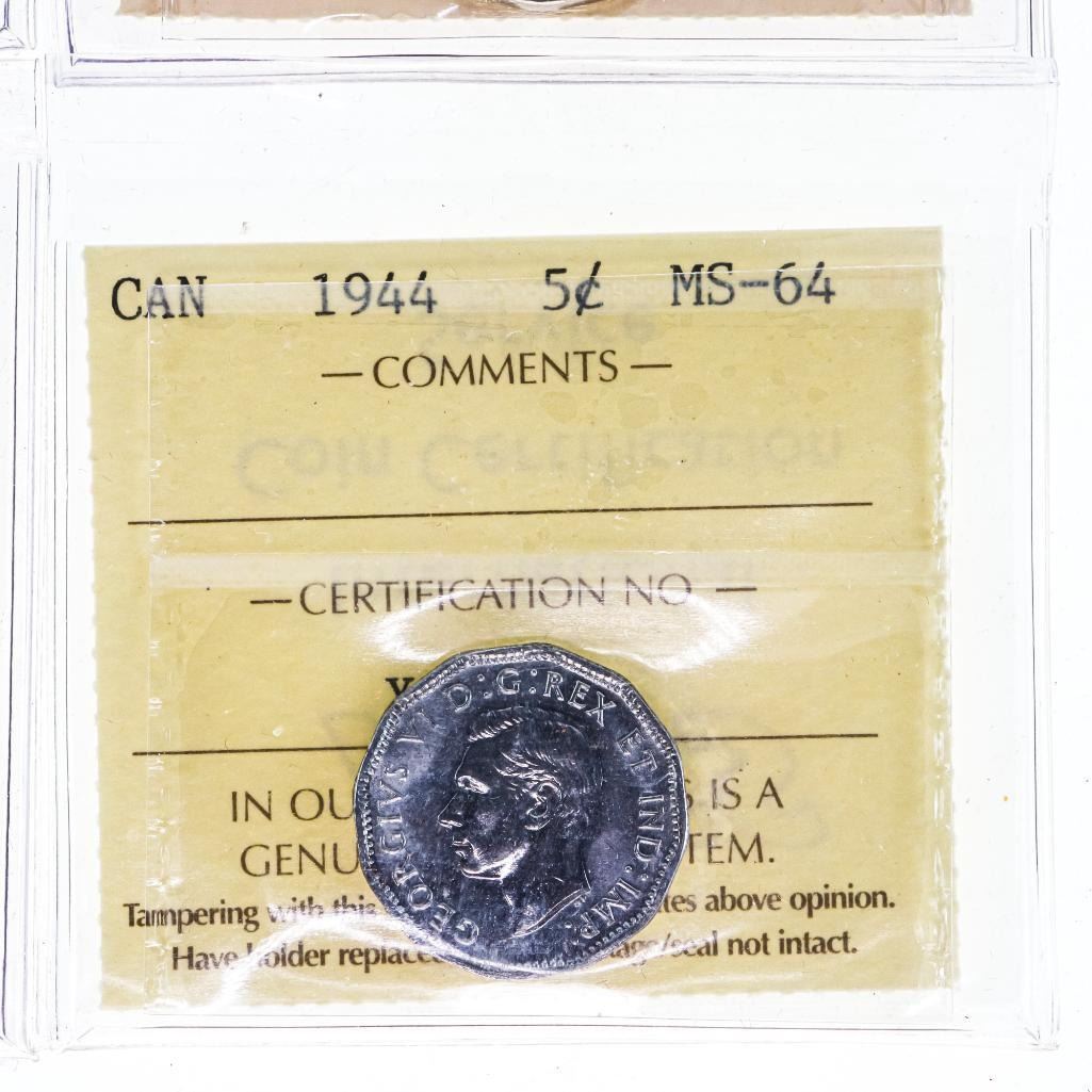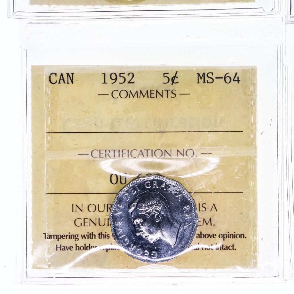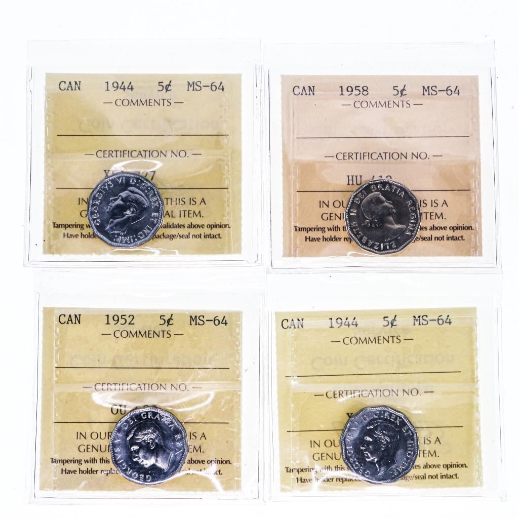 Group of 4 Canada Five Cents - 2 x 1944, 1952, 1958 - All MS64 ICCS
