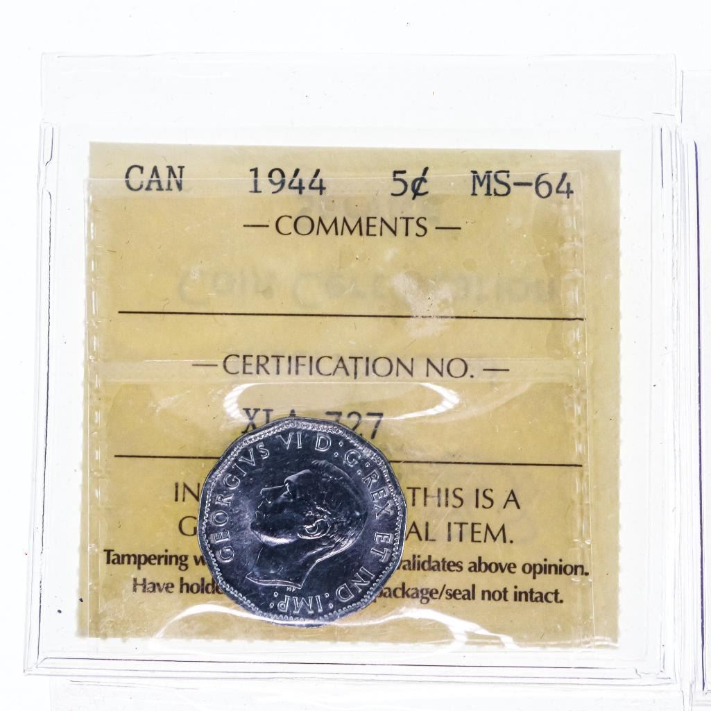 Group of 4 Canada Five Cents - 2 x 1944, 1952, 1958 - All MS64 ICCS-1006544