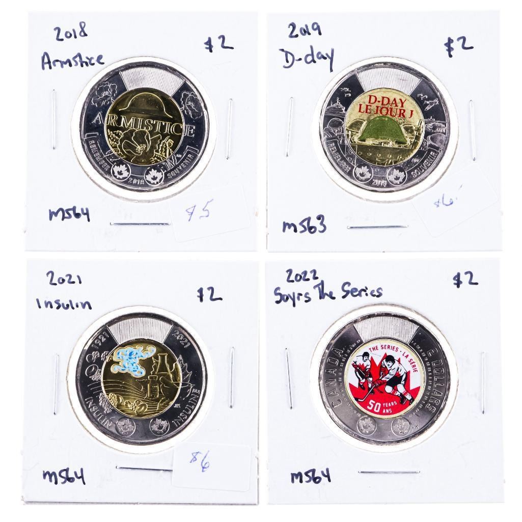 Group of 4 Canada Special Issue $2 Coins - High Grades