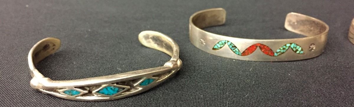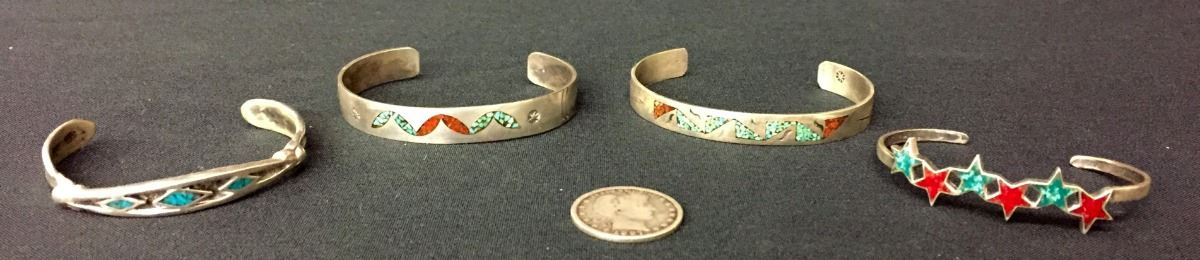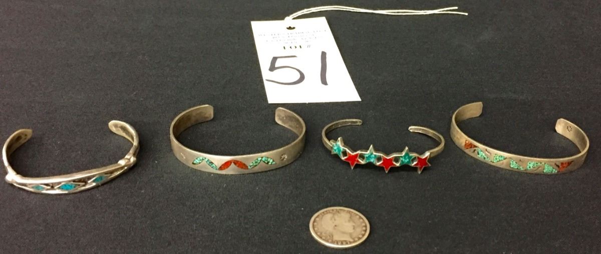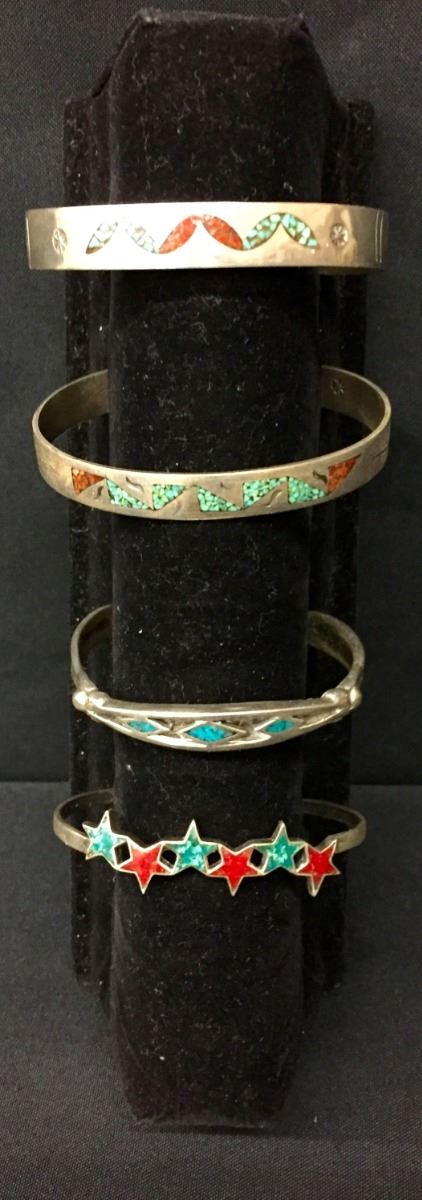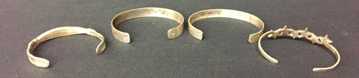 You get 4 bracelets for 1 money! All appear to be sterling. Medium / average size. Collectively they weigh 49.4g. Good condition. Please look closely at pics as they are an important part of our description. Shipping: There will be a $5 handling / packaging fee for shipping this lot. The actual cost of postage will be added on top of that.
