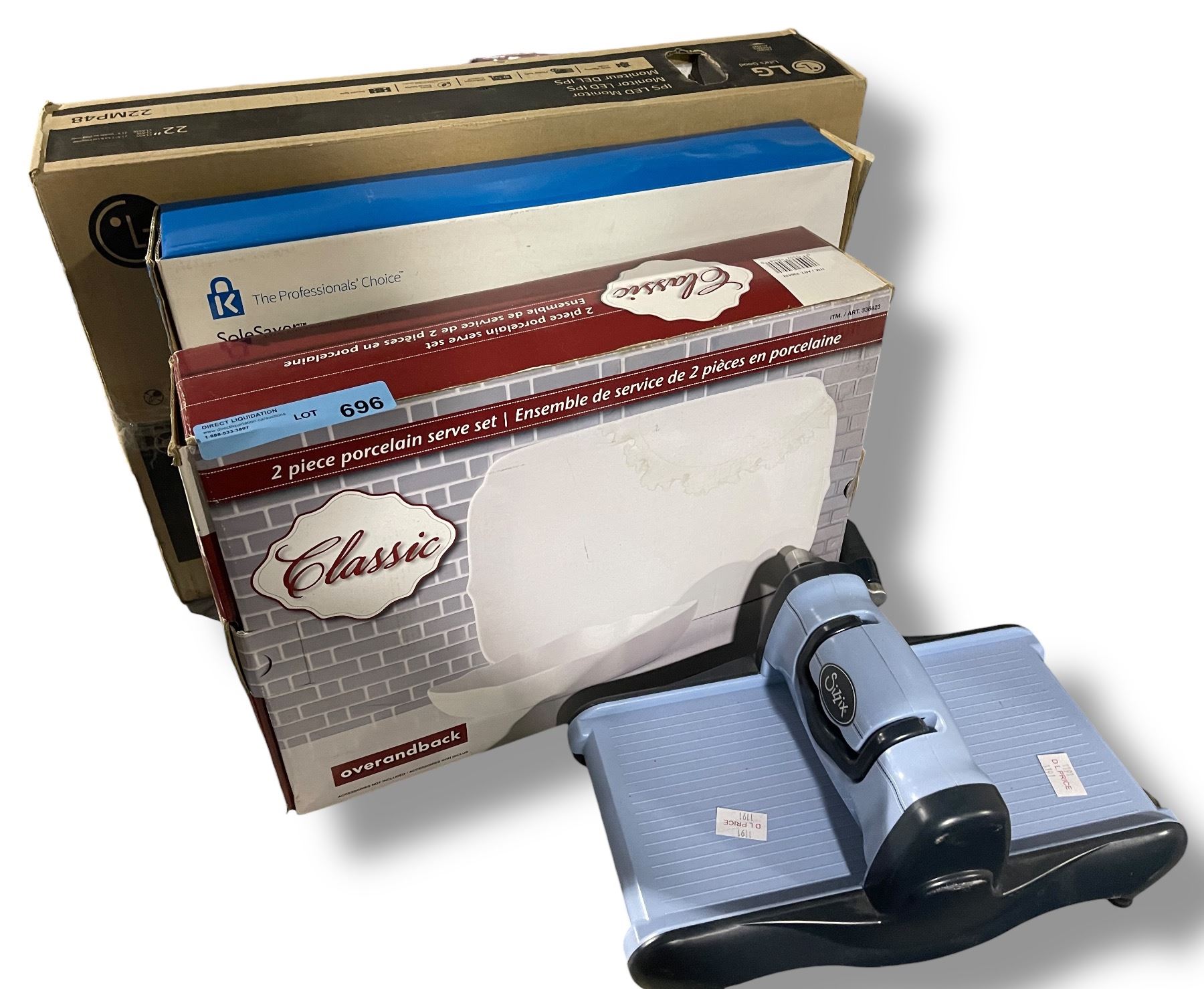 Group of 4 Home & Office Essentials: LG 22" IPS LED Monitor, Foot Rest, Porcelain Serve Set & Sizzix Die‑Cut Machine - As Is